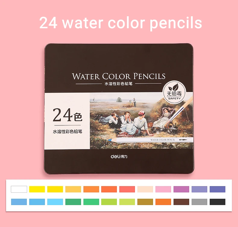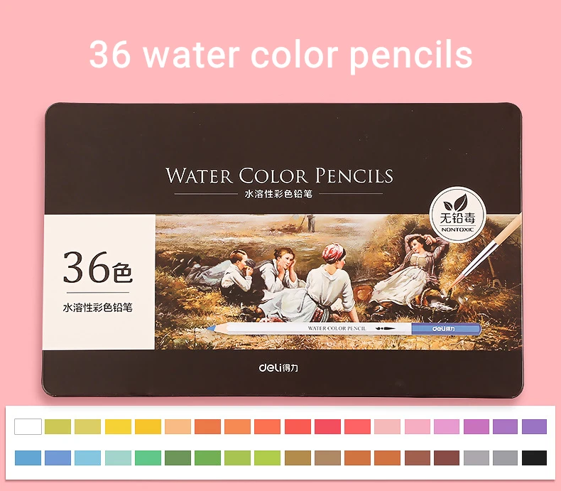Цветные карандаши Deli, водорастворимые, 24, 36, 48 цветов s, аквар...