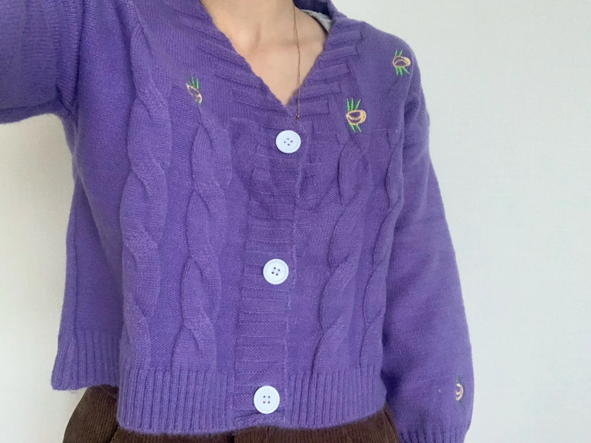 Кардиган женский вязаный, с цветочной вышивкой, V-образным вырезом и рукавами-фонариками, осень 2020