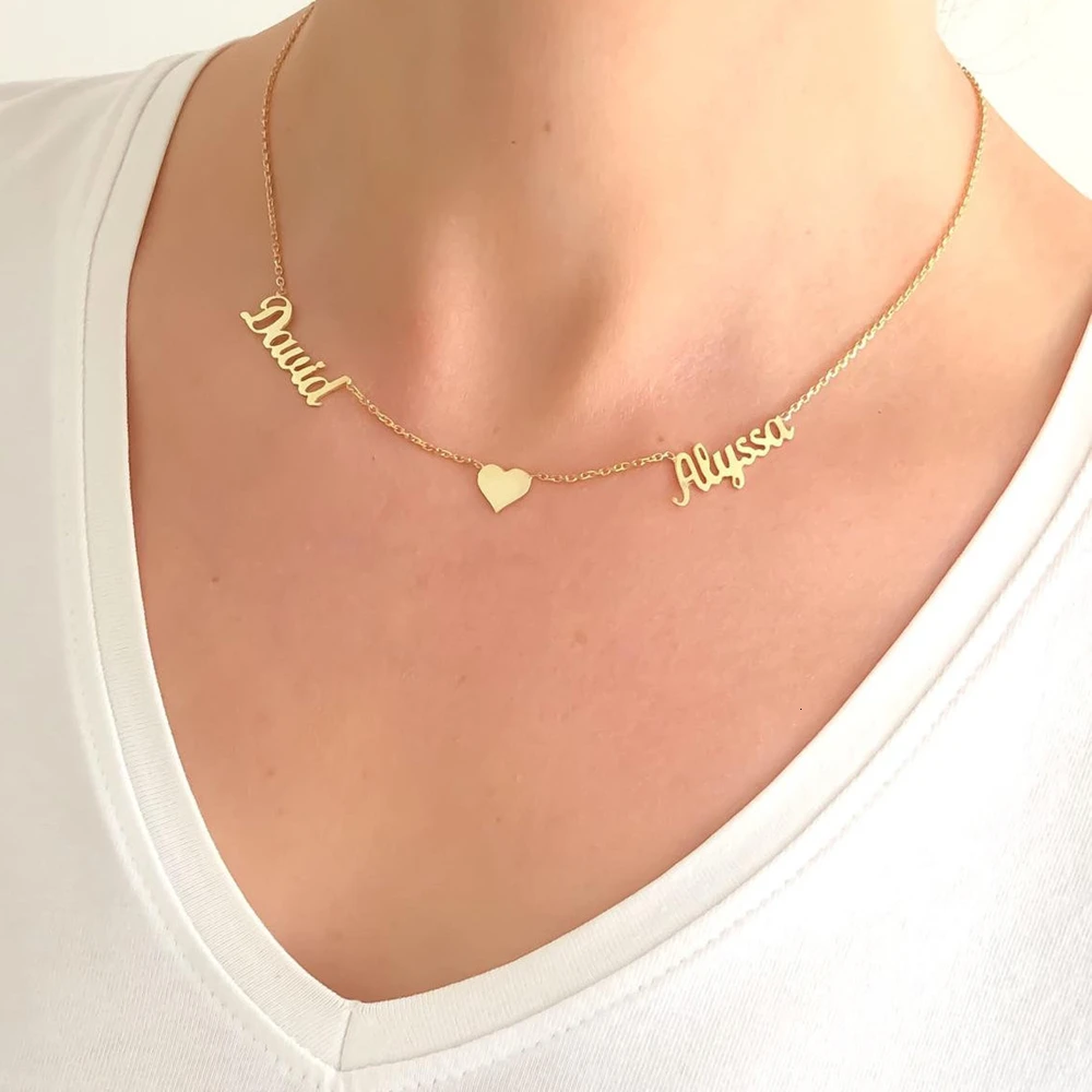 Персонализированное ожерелье с именем на заказ, кулон с именем из нержавеющей стали и сердцем, можно добавить несколько названий и сердца, лучший подарок для семьи