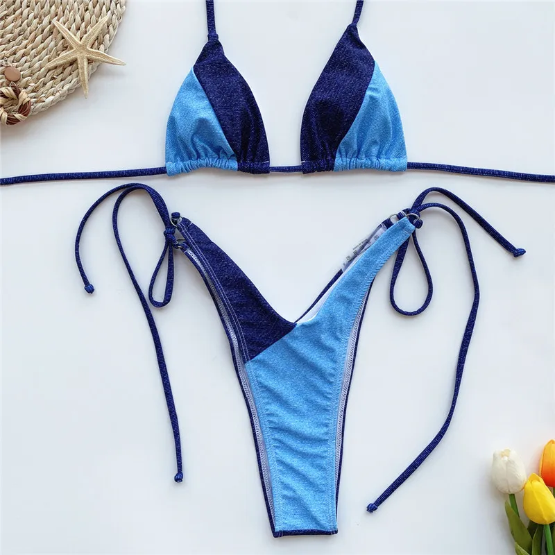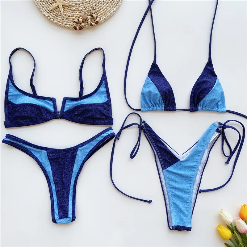 Сексуальные стринги, бикини 2020, лоскутный купальник, женский, Холтер, купальник, женский, стринги, купальный костюм, комплект из двух предметов, новый