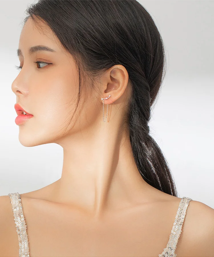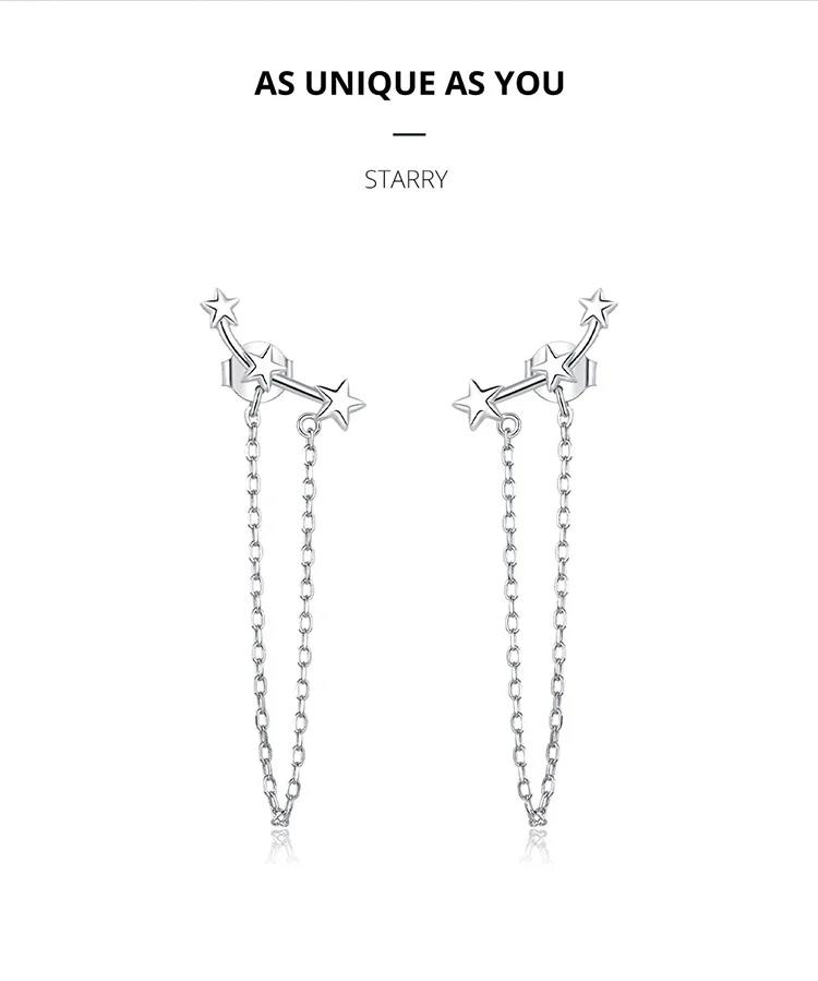 Bamoer, моно-серьги, 925 пробы Серебряная Ушная манжета, Луна и зве...