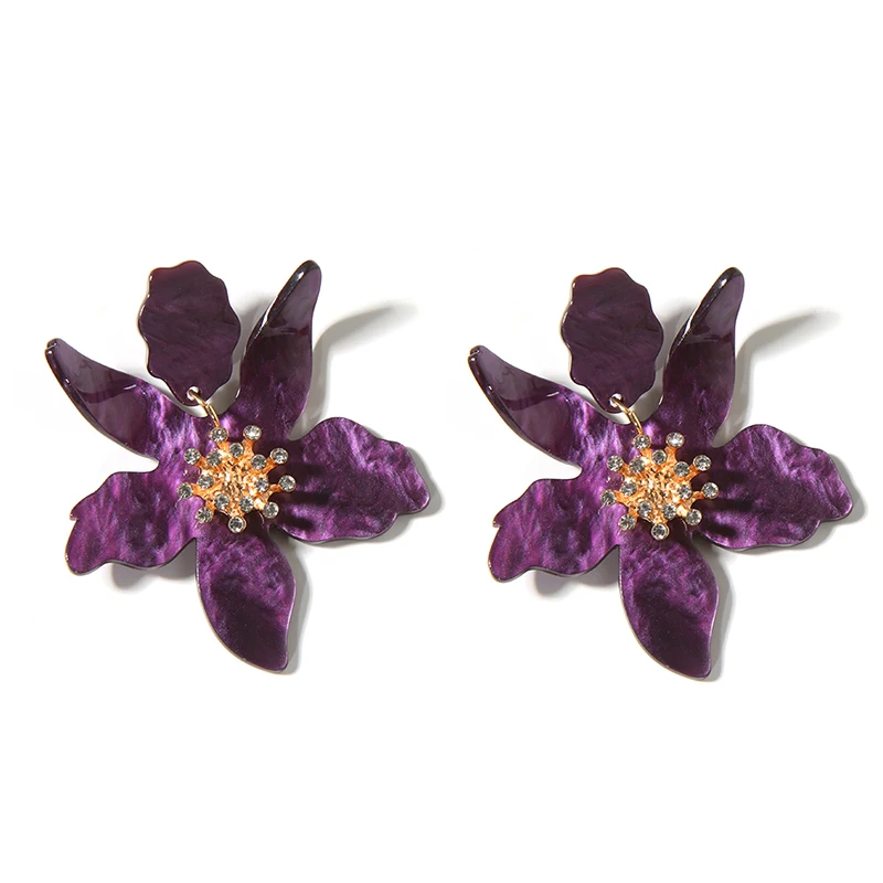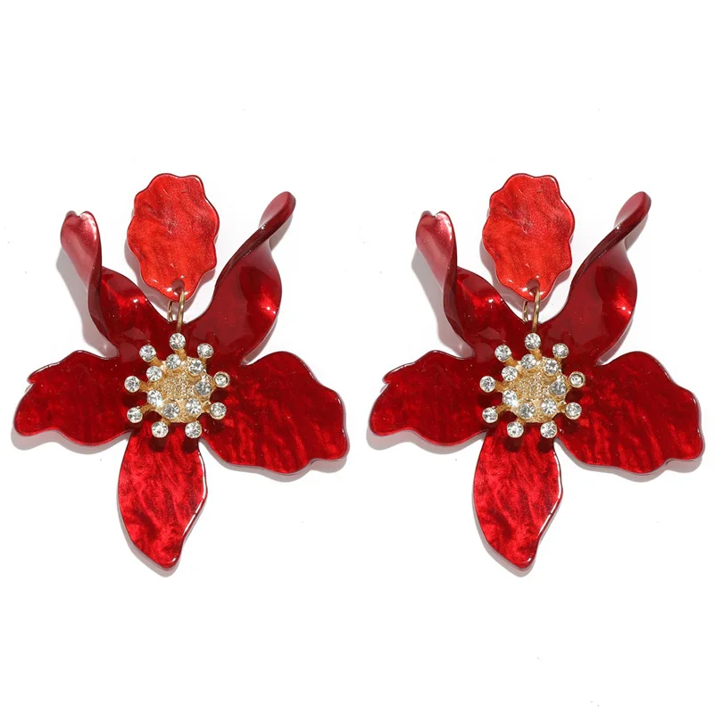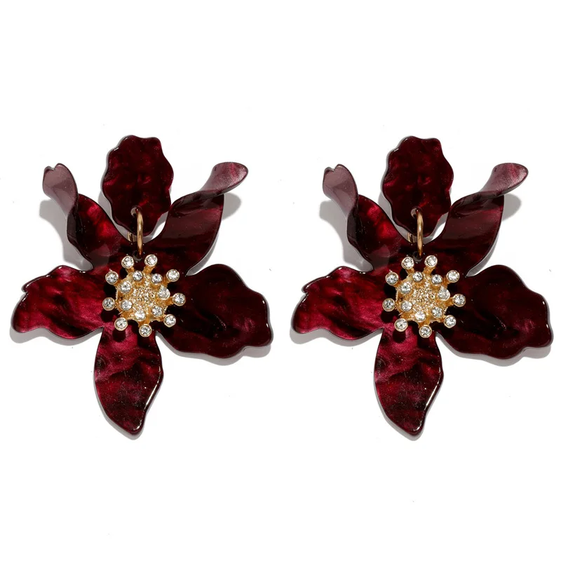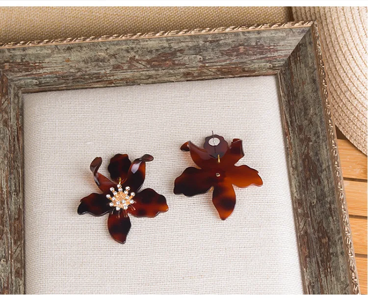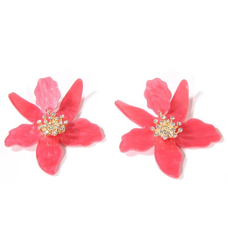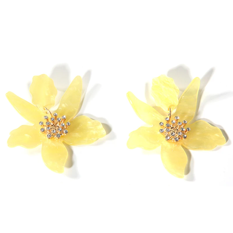 Яркие большие цветы Висячие серьги для женщин Бохо этнические смолы акриловые Лепестковые серьги Рождественская вечеринка подарок D'oreille ювелирные изделия
