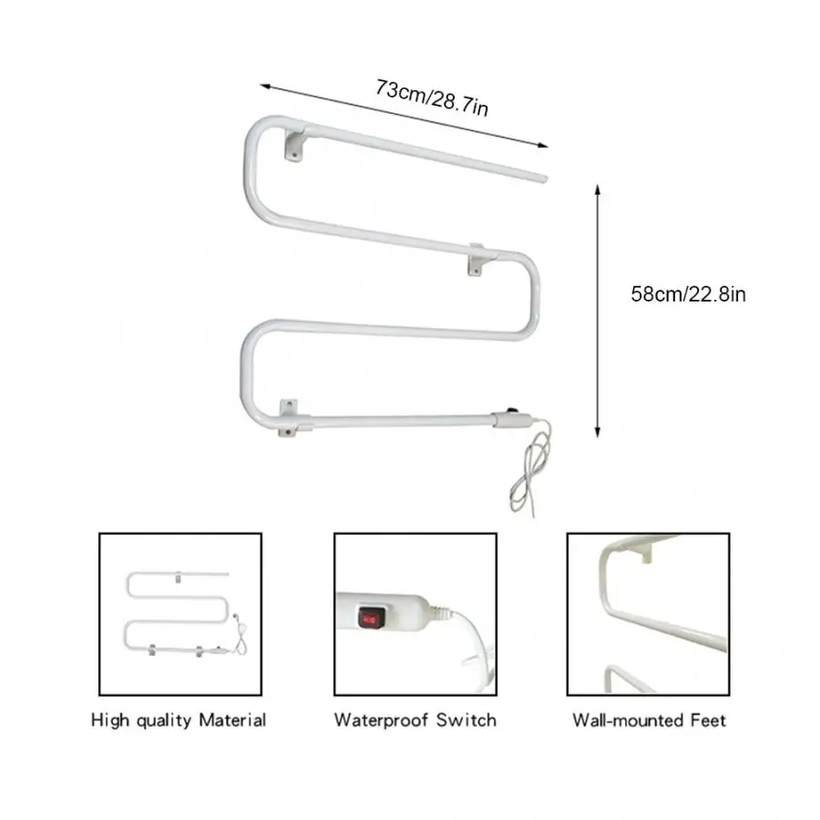 1. Полотенцесушитель может согревать ваше полотенце s, банное полотенце в быстрой скорости, и это 2 в 1 уникальный обеспечит много удобства для всей семьи в повседневной жизни. 2. Поверхность использует технологию белого распыления, которая обеспечивает длительное использование и быстро нагревается. 3. Все необходимые аппаратные средства и инструменты включены в посылка. Очень легко собрать с помощью нашего руководства. 4. Изготовлен из низкоуглеродистой стали, водонепроницаемый и устойчивый к использованию. 5. Настенный, который принесет вам много удобства и очень экономит пространство. 6. Постоянная температура нагрева, не повреждает полотенце, предотвращает слишком влажное и разведение. 7. Низкое энергопотребление, так же низко, как один киловатт-час электроэнергии, практично.