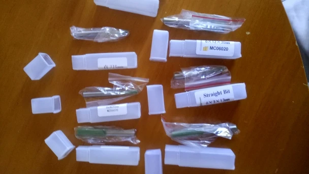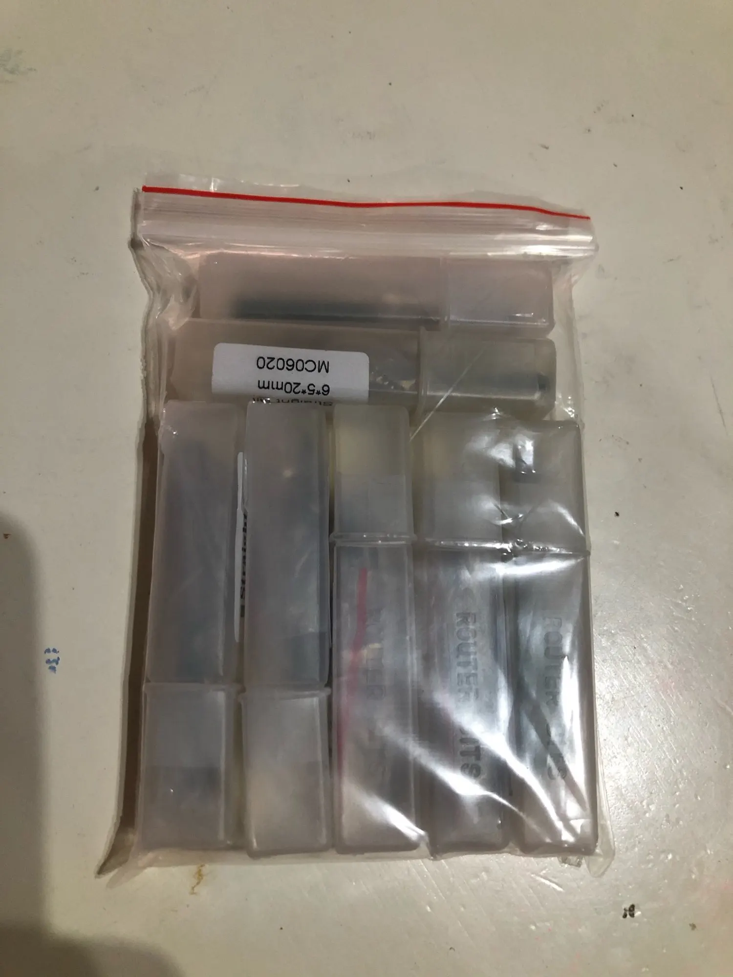 Все получил. Фрезы вроде острые. Коробки тонкостеные, но есть наклейки кая там фреза.