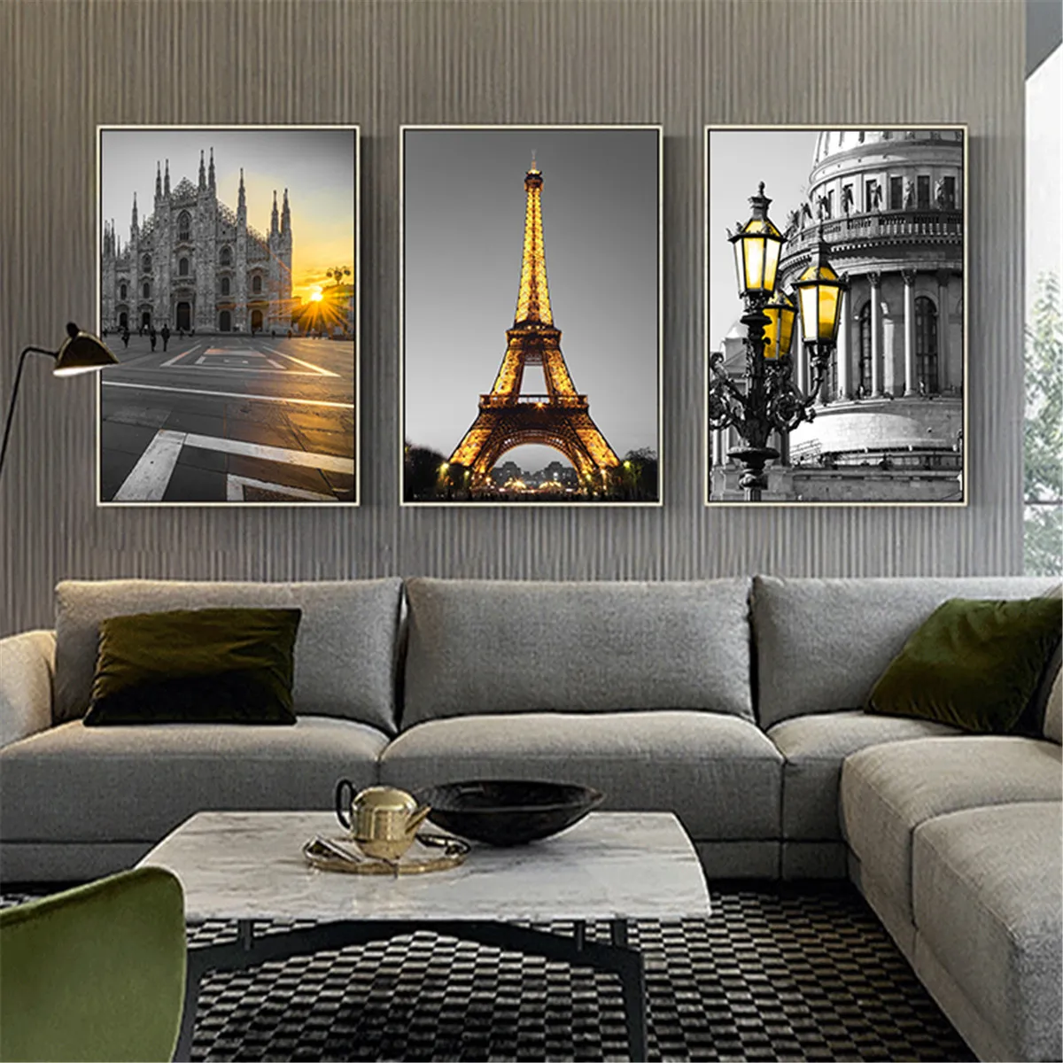 Пейзаж башни, города, европейская архитектура, пейзаж, картина, постер, холст, печать, живопись, настенное искусство, гостиная, украшение для дома