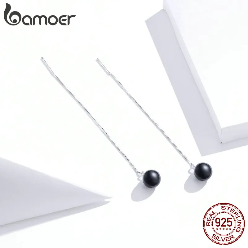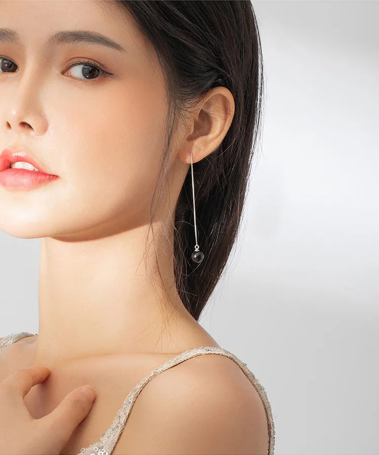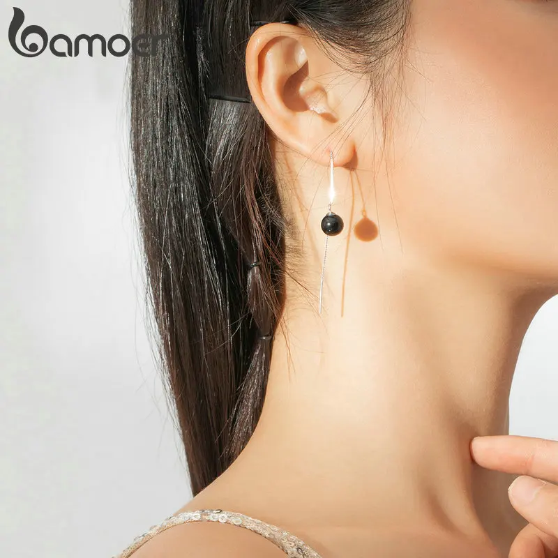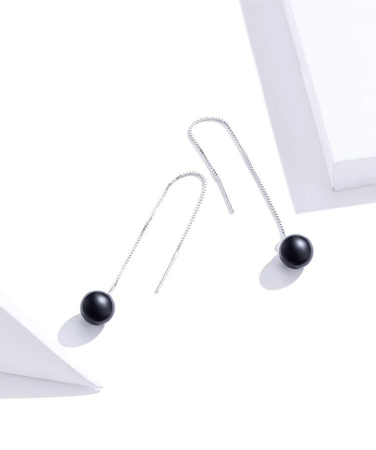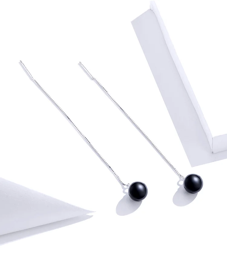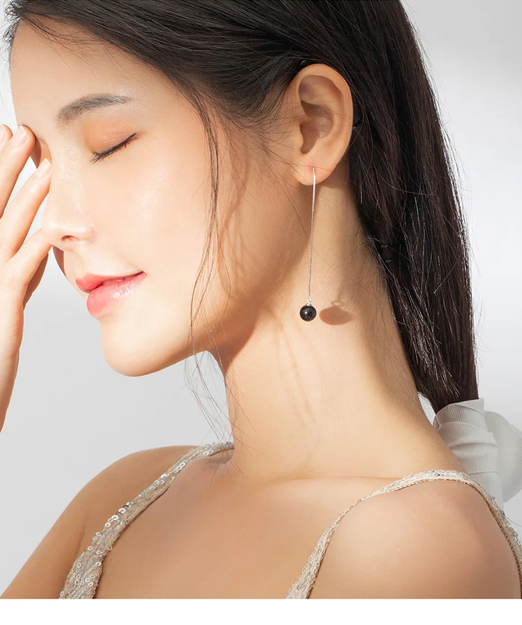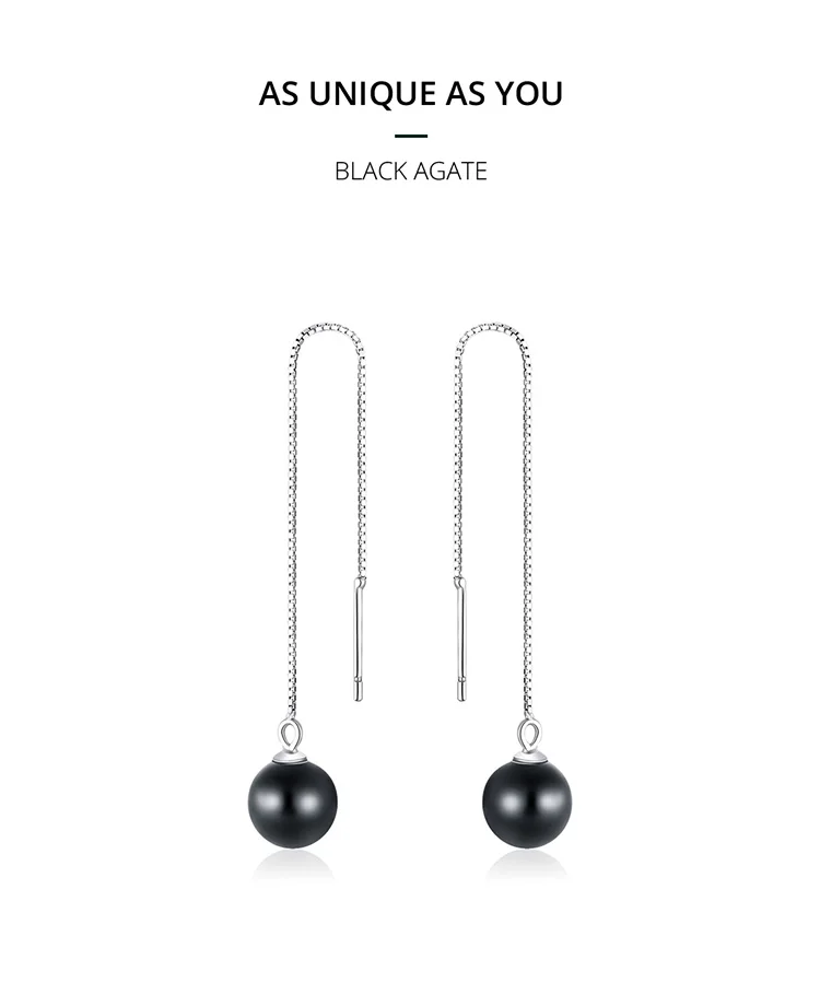 Женские серьги-подвески из серебра 925 пробы, с бусинами и черным агатом