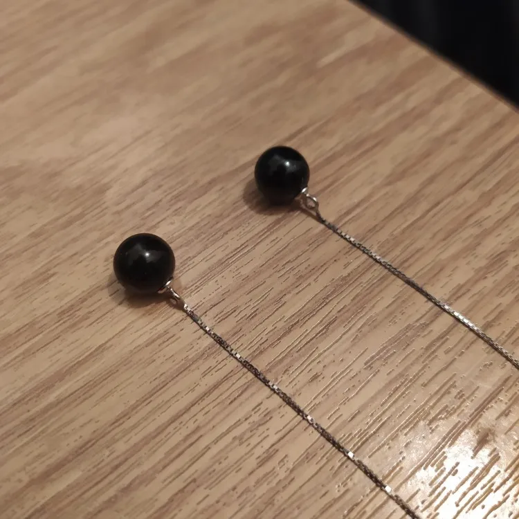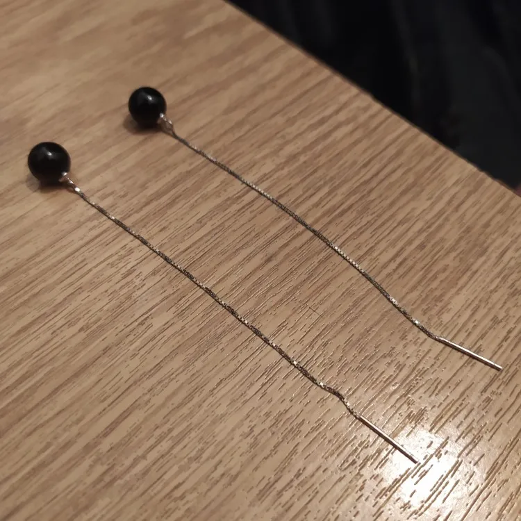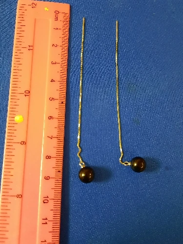Пришло быстро, 2 с половиной недели. Можно отрегулировать как сильно будет свисать. Нет застежки, держатся за счет своего веса. В подарок пришли коробочка и очень мягкий мешочек, в которых можно хранить или подарить (возможно потому что заказывали сразу несколько товаров у этого продавца).
