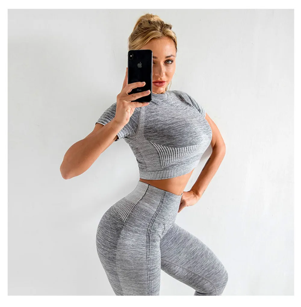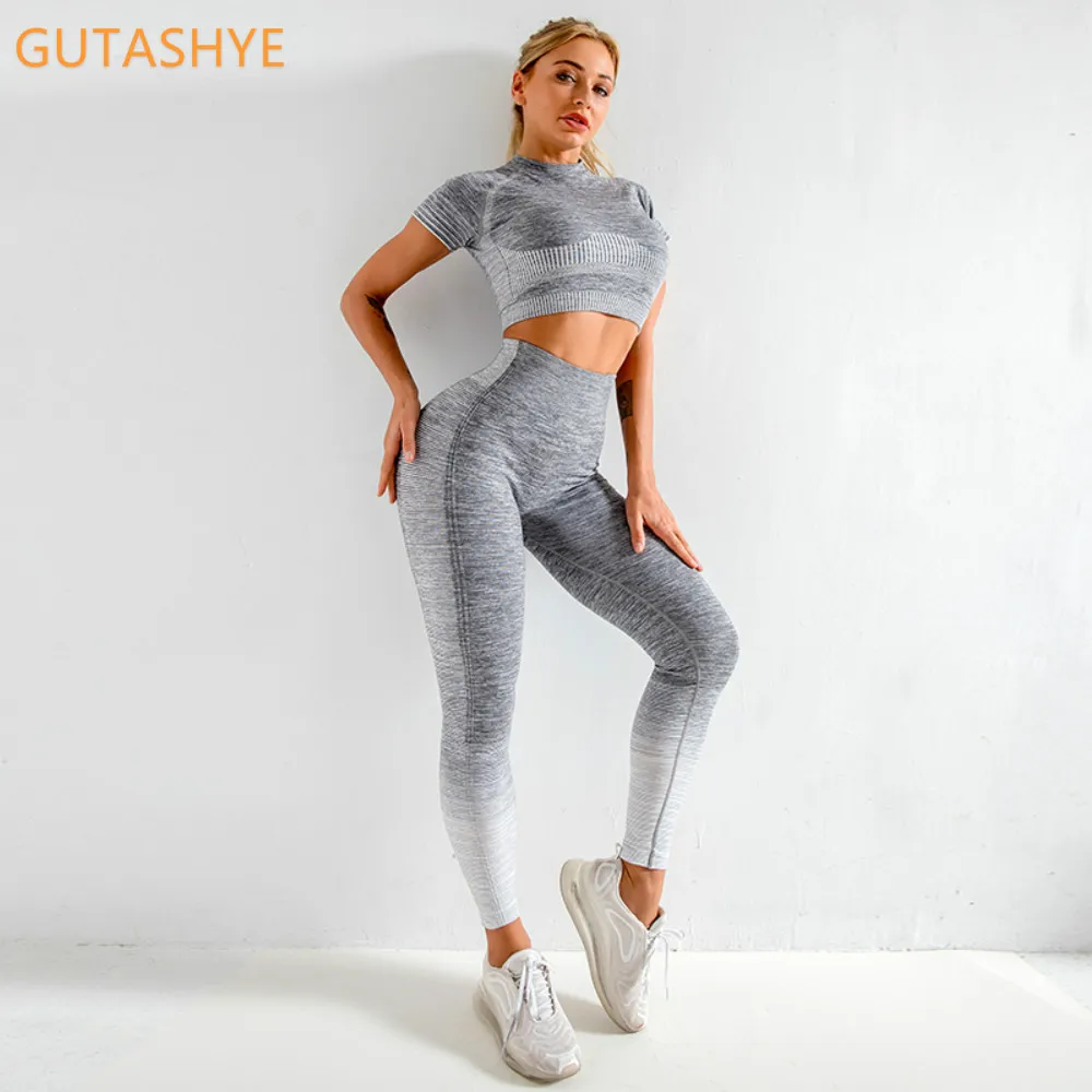 Женские комплекты для йоги GUTA, спортивные Леггинсы с коротким рукавом и высокой талией, комплект для тренажерного зала, одежда для йоги, спортивный костюм, топ для фитнеса, рубашка, костюм для йоги