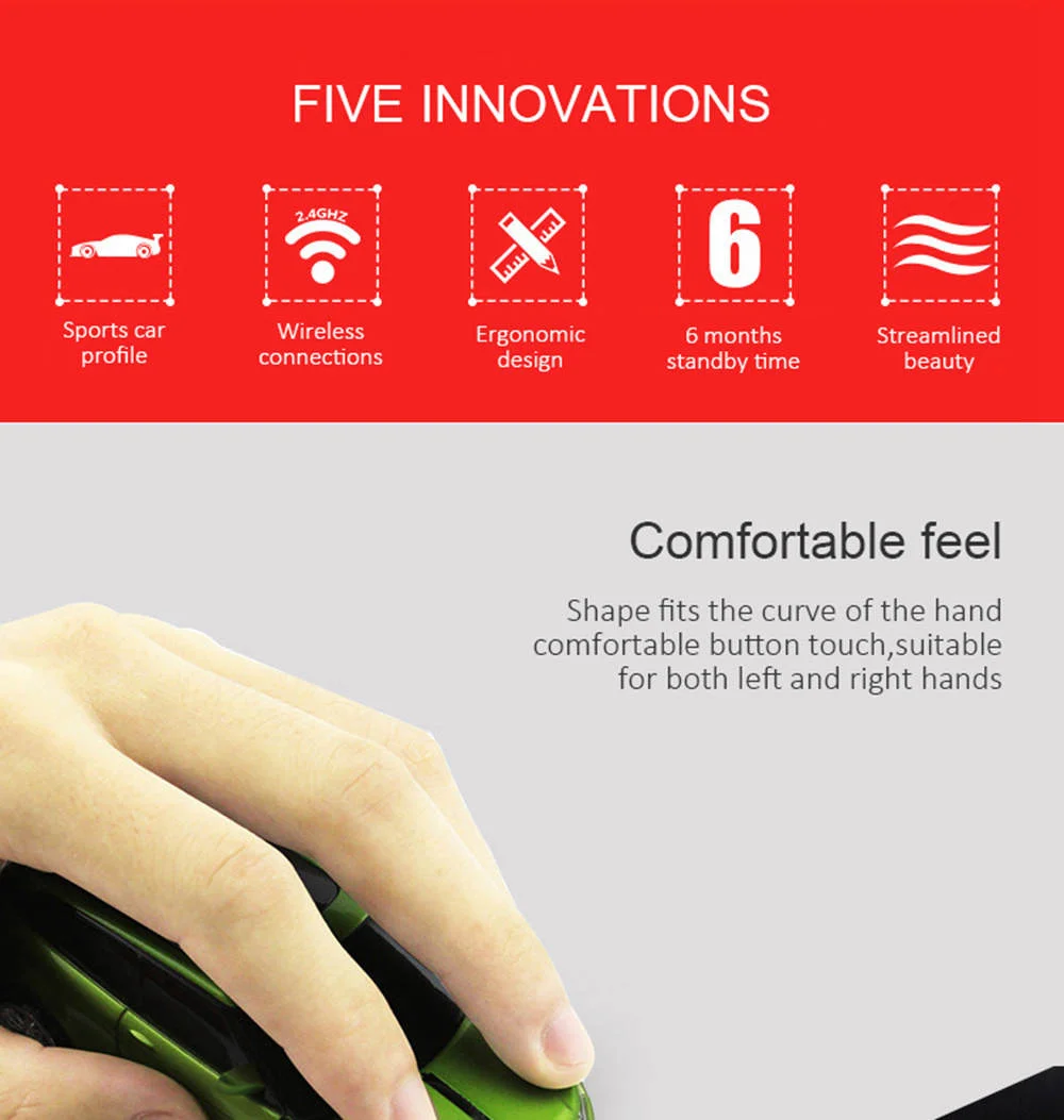 Новая офисная беспроводная мышь в форме спортивного автомобиля, USB...