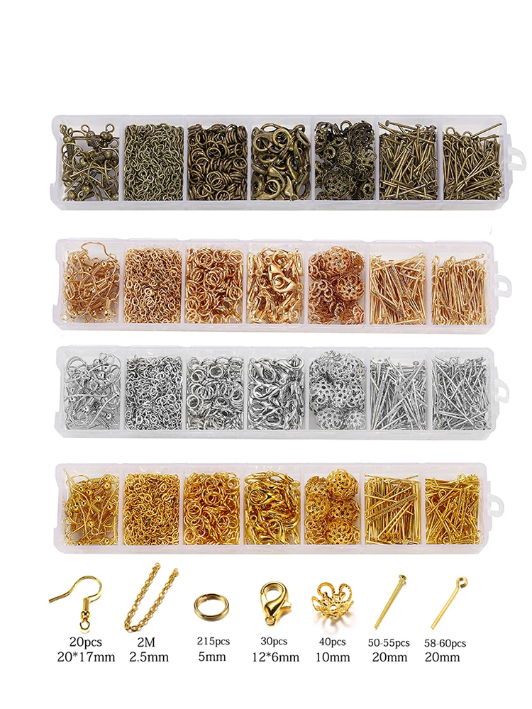 420 шт.кор. наборы для изготовления ювелирных изделий, цепочка для ожерелья, серьги, крючки, булавки для головы, соединительные кольца, застежка-лобстер, товары для рукоделия набор ювелирной фурнитуры