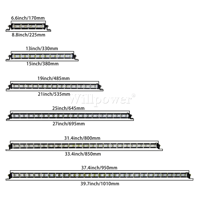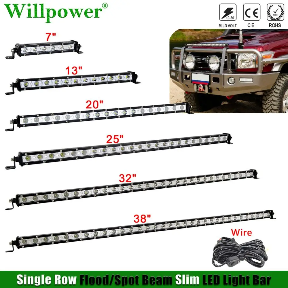Однорядная тонкая светодиодная световая балка для внедорожника, 7 дюймов, 13 дюймов, 20 дюймов, 25 дюймов, 38 дюймов, для джипа, внедорожника, пикапа, 4X4, бампера, светодиодная балка, противотуманная фара