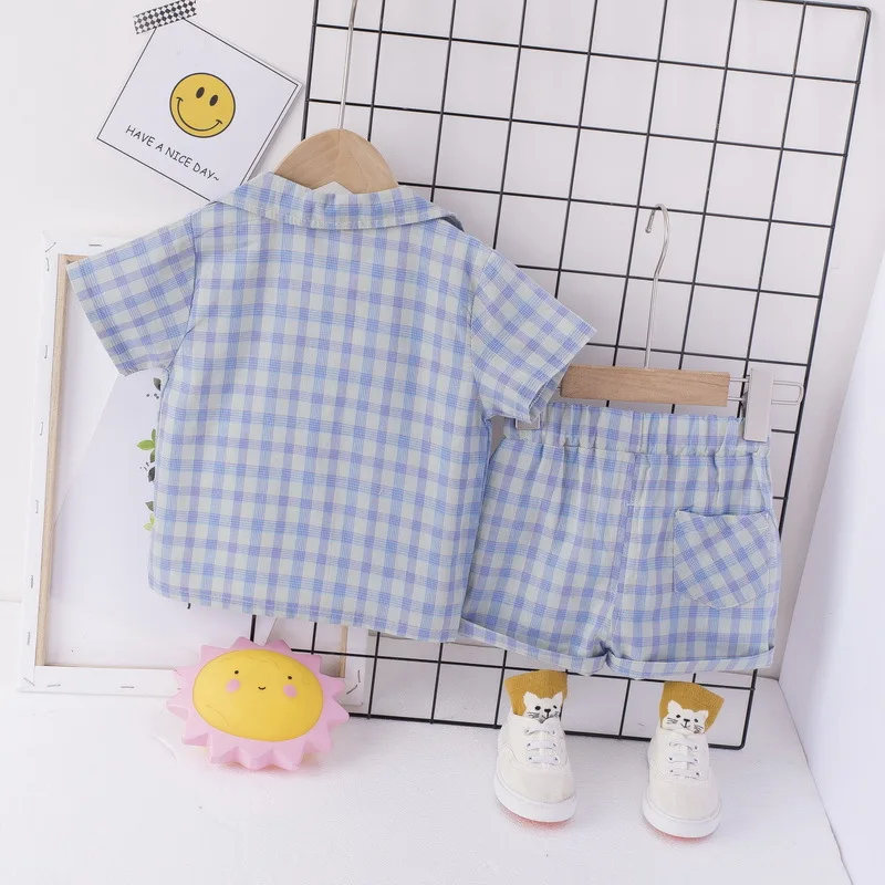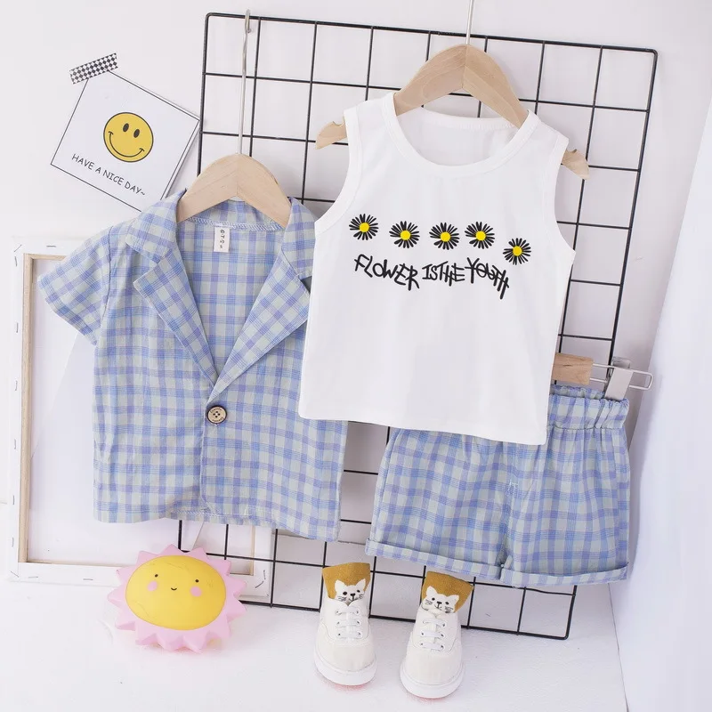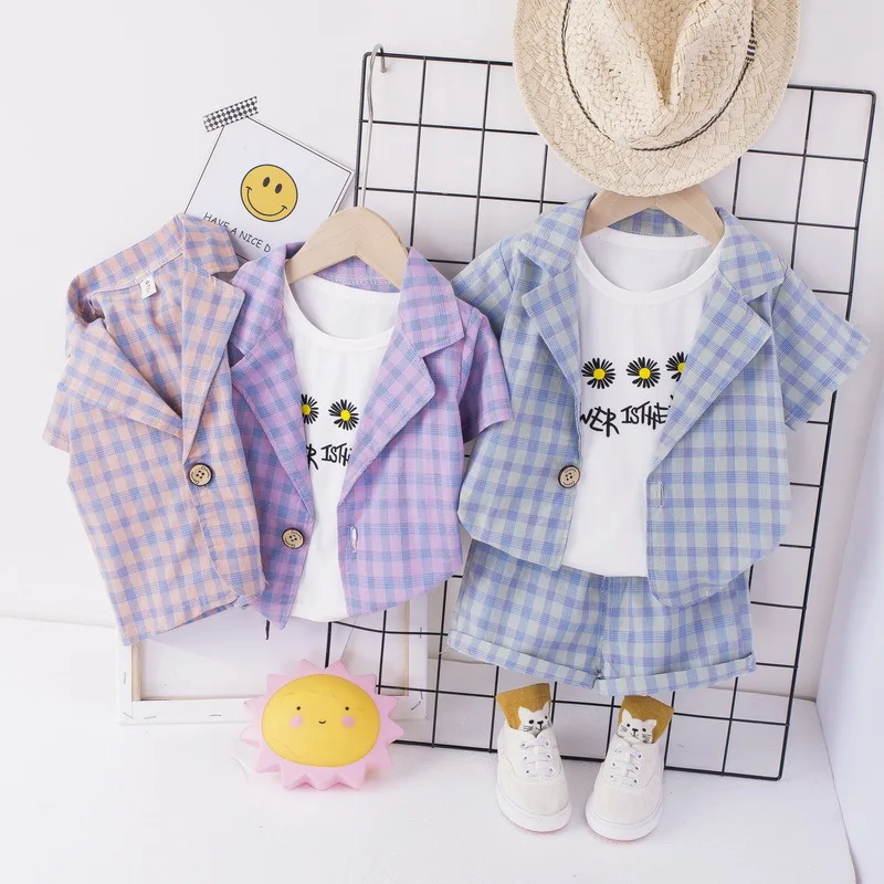 Newborn baby Boys summer clothes outfits wear sets plaid jacket + T-shirt + shorts casual suit for infant baby boy clothing sets