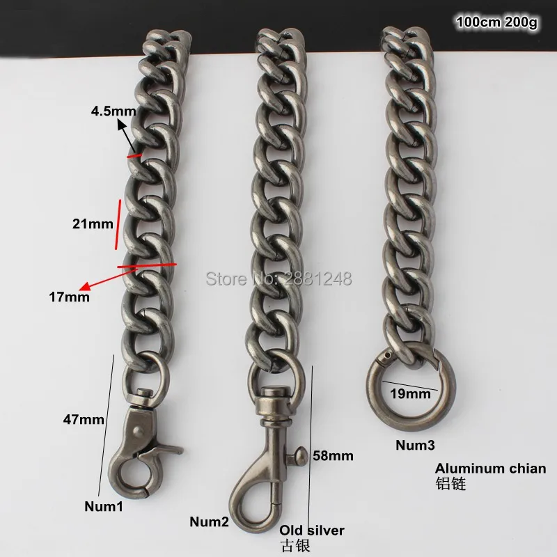 Новинка старая Серебряная 17 мм алюминиевая цепь роликовая металлическая Толстая Легкая Цепь для ручных сумок сменный длинный ремешок