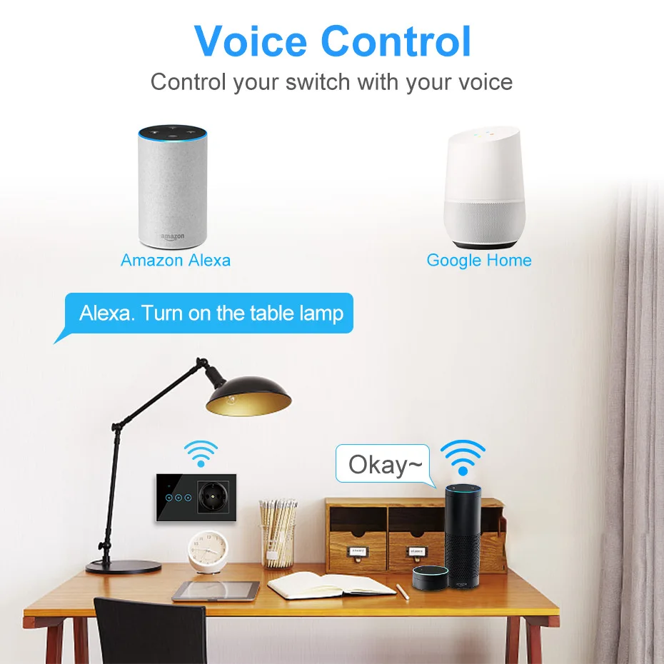 Умный настенный выключатель 2 в 1, Alexa, 90 В, 240 в, Wi-Fi, 16 А,...