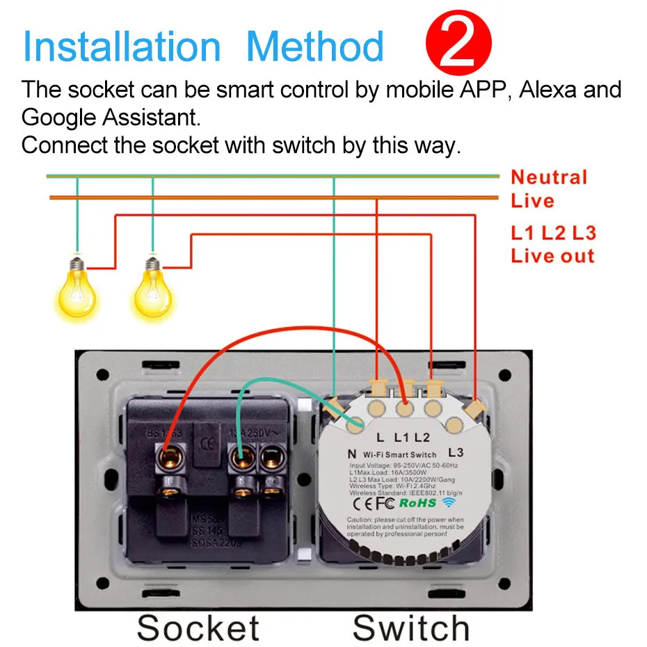 Этот смарт-переключатель Wi-Fi должен быть powerd как с помощью живой, так и с нейтральной линии, пожалуйста, отключите питание при установке и отказе от установки, работает профессиональным человеком.