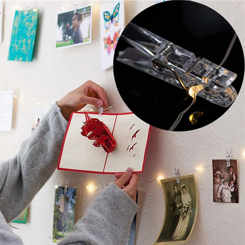 Особенности: * Наружное и внутреннее оформление светом; * Высокая яркость, низкое энергопотребление; * Лампу следует держать вдали от сырости, дождя или тумана; * Энергосберегающий и экологически чистый, без радиации или элементов загрязнения; * Яркие сказочные огни для украшения вашего Рождества, свадьбы, вечерние, Нового года, Дня Святого Валентина, Рождественского фестиваля. * Питание от USB Дополнительные рекомендации: Многофункциональный! Что другие не могут, делайте по-другому, в любом случае, вы хотите! 1. Без зажима, как согревающий сердце мерцающий светильник s украшения как Свадьба Вечерние, Декор, банка каменщика, Рождественский свет. 2. Вы также можете использовать клипсы для упорядочивания и подвешивания фотографий, фотографий, художественных работ, принтов 3. Наша Модернизированная версия с 20/50 светодиодными зажимами и может быть свободно настроена. Другие имеют только 20 светодиодный 30 светодиодных зажимов и не могут регулироваться, купите 1 у нас почти соответствует 2 у других. 4. Не нужно много дорогих тяжелых фоторамок, не нужно сверлить отверстие или использовать клей для крепления фотографий на стену, вы можете менять фотографии, когда захотите, нет необходимости менять фоторамку по рамке. 5 светильник ите красивый момент: Мерцающая Гирлянда-Романтический способ вспомнить о вашем незабываемом и прекрасном моменте. Приблизите вас и ваших близких. Он также может украсить ваш дом и привнести вам теплую и веселую атмосферу.