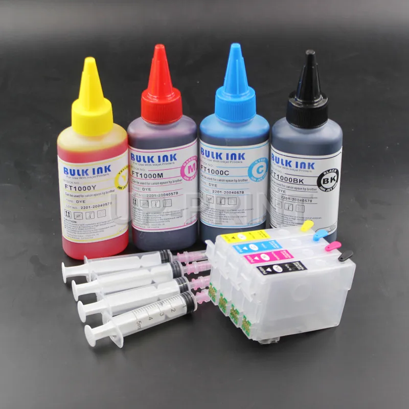 1 x Черный чернильный картридж T603xl пустой с дугой + чернила + инструмент для пополнения 1 x T603XL Cyan чернильный картридж пустойСДуга + чернила + инструмент для пополнения 1 х T603XL пурпурный картридж пустойСДуга + чернила + инструмент для пополнения 1 х T603XL Желтый чернильный картридж пустойСДуга + чернила + инструмент для пополнения