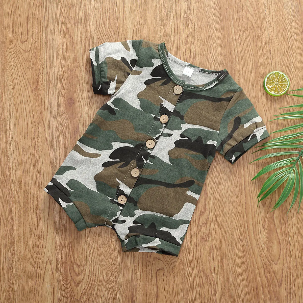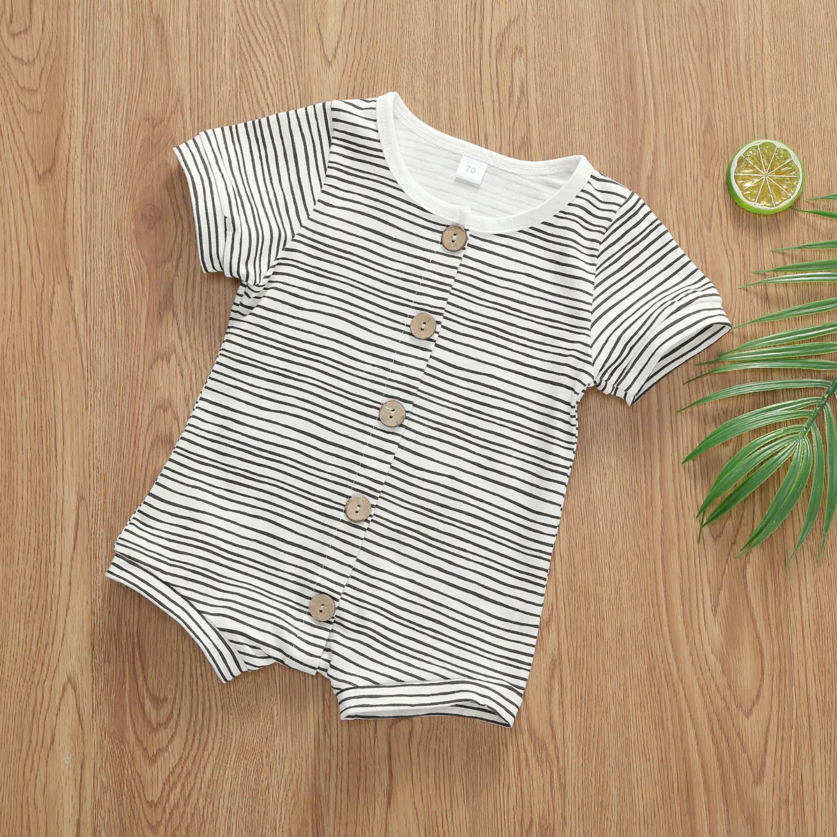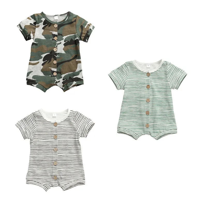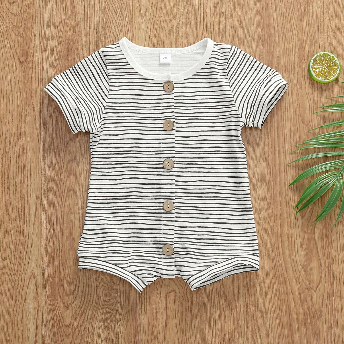 Комбинезоны для новорожденных девочек и мальчиков от 0 до 18 месяцев, 3 стиля, однобортные комбинезоны в полоску с камуфляжным принтом и короткими рукавами