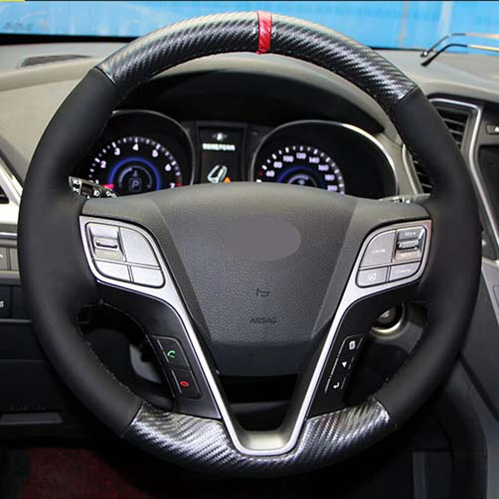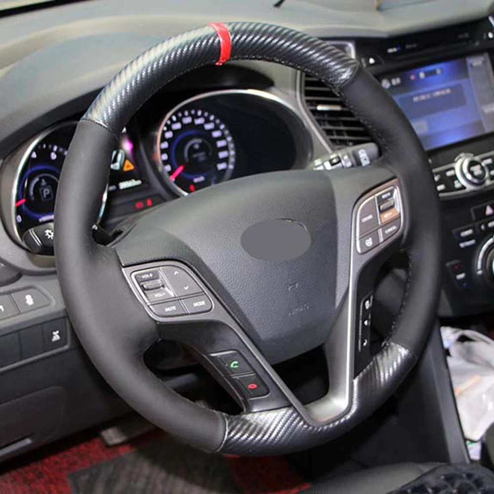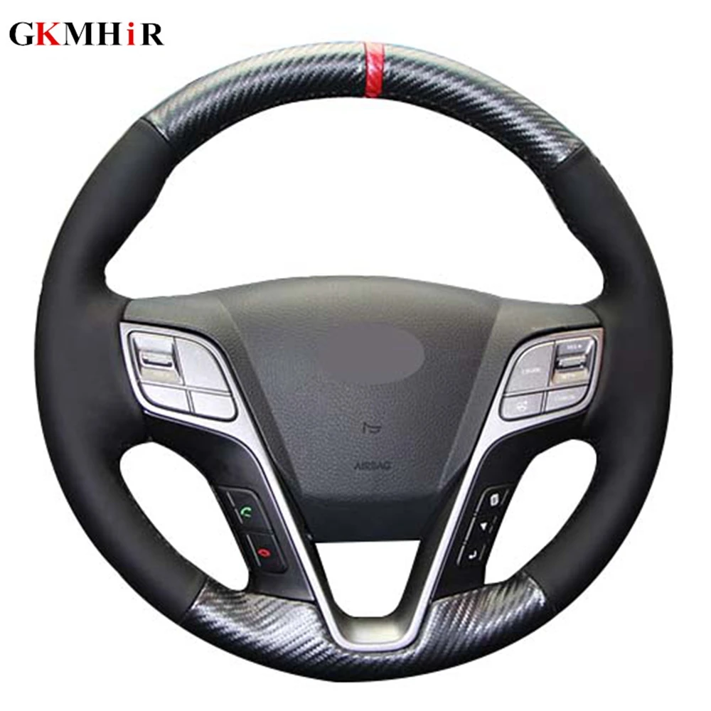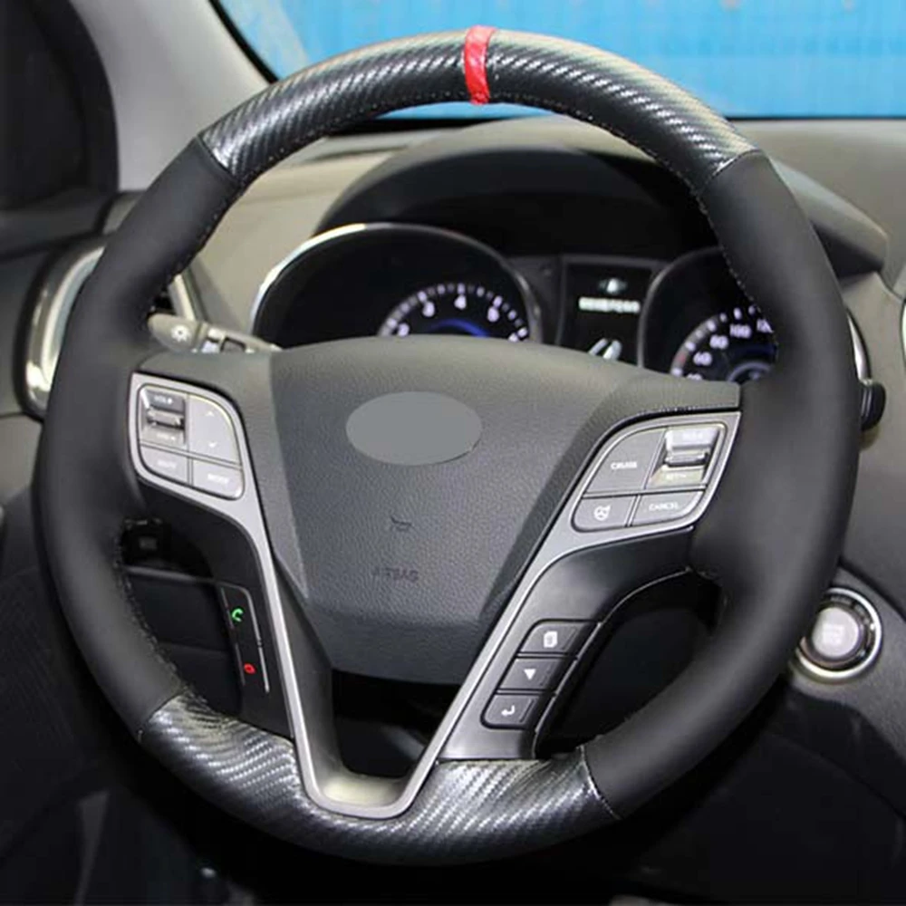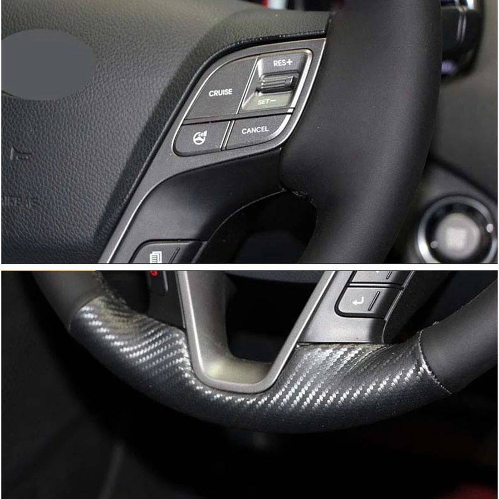Черный из натуральной кожи углерода DIY чехол рулевого колеса автомобиля для Hyundai ix45 Santa Fe 2013 2014 2015 2016