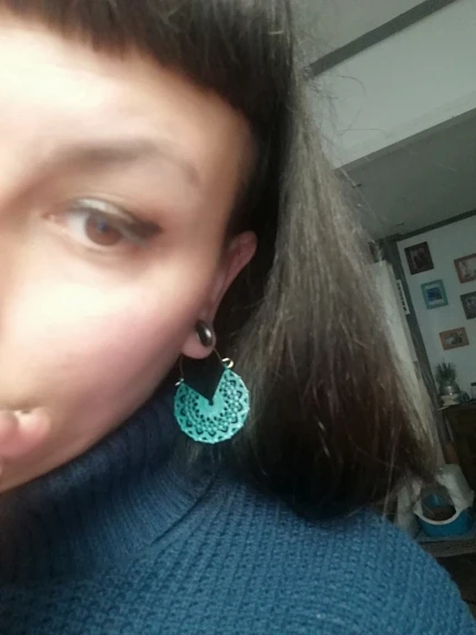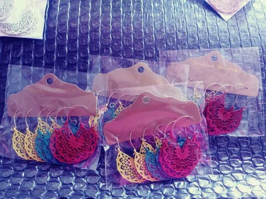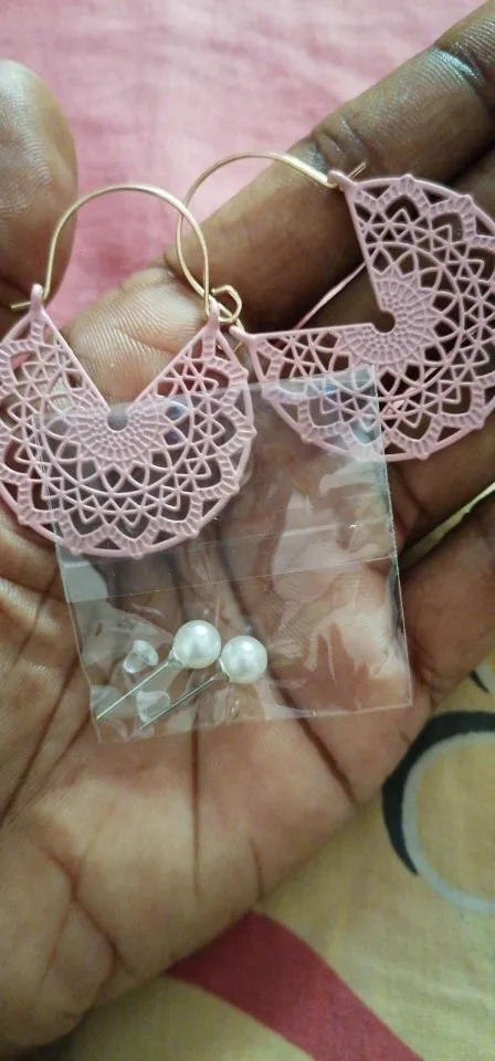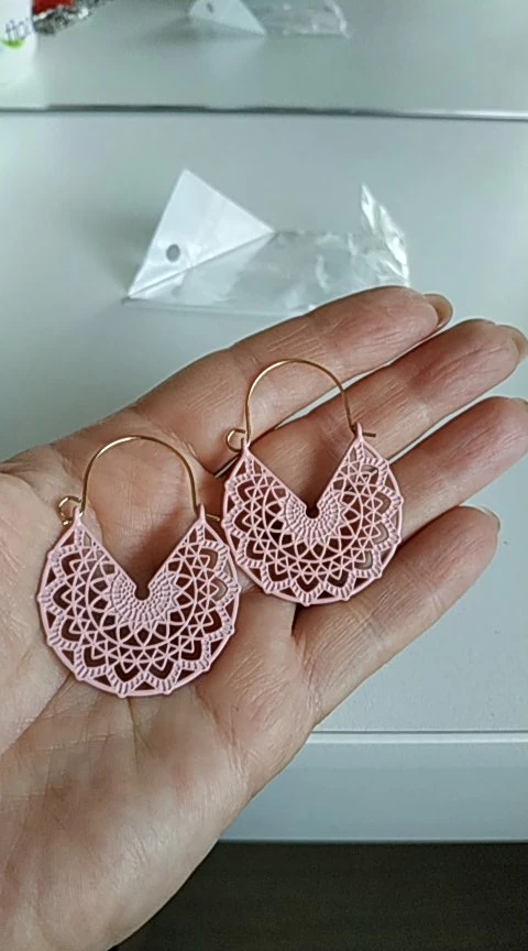 Отличные эффектные сережки. Точно как на картинке картинке. Смотрятся необычно. Напоминают кружево.Немного непривычная застёжка, но зато надёжная. Продавец положил ещё и 2силиконовых заглушки. Доставка три недели в Украину. Очень рекомендую.