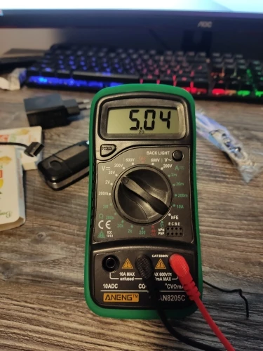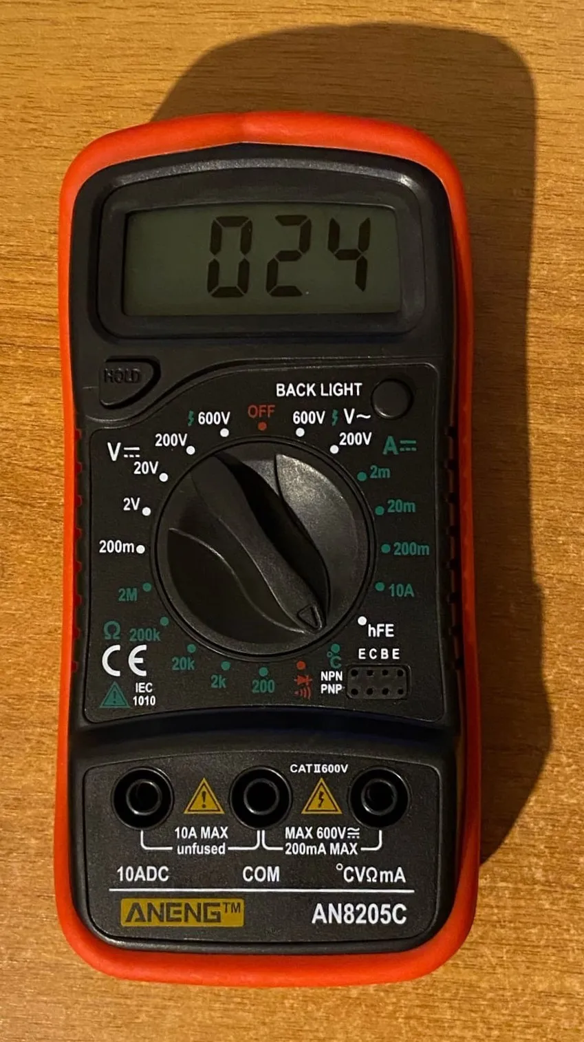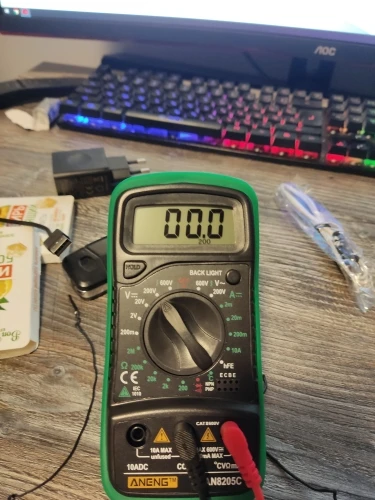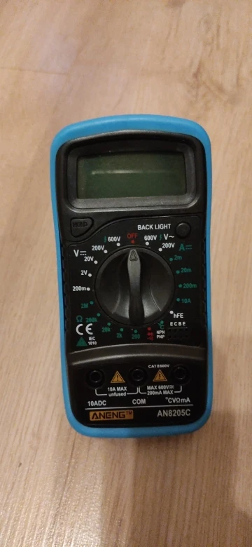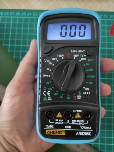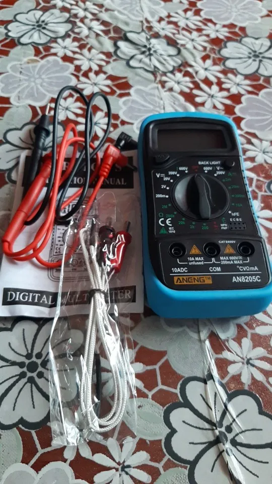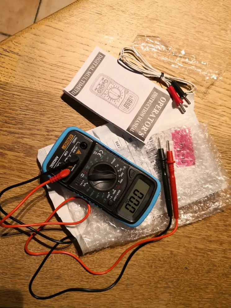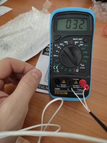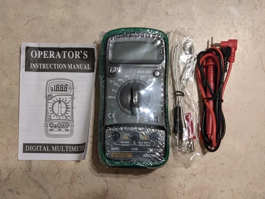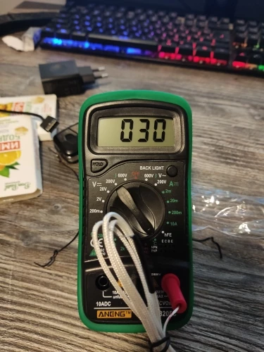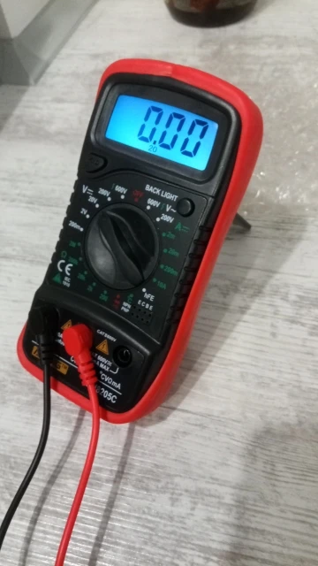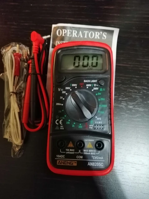 Хороший дешёвый мультиметр. Точность неизвестная, но её однозначно хватает для того чтобы замерять напряжение и прозванивать цепи. Пищалка работает. В комплекте идёт термопара, тоже дешёвая. Скорее побаловаться. Минус: подсветка работает пару секунд и затухает. Неизвестно как оставить её на постоянку.