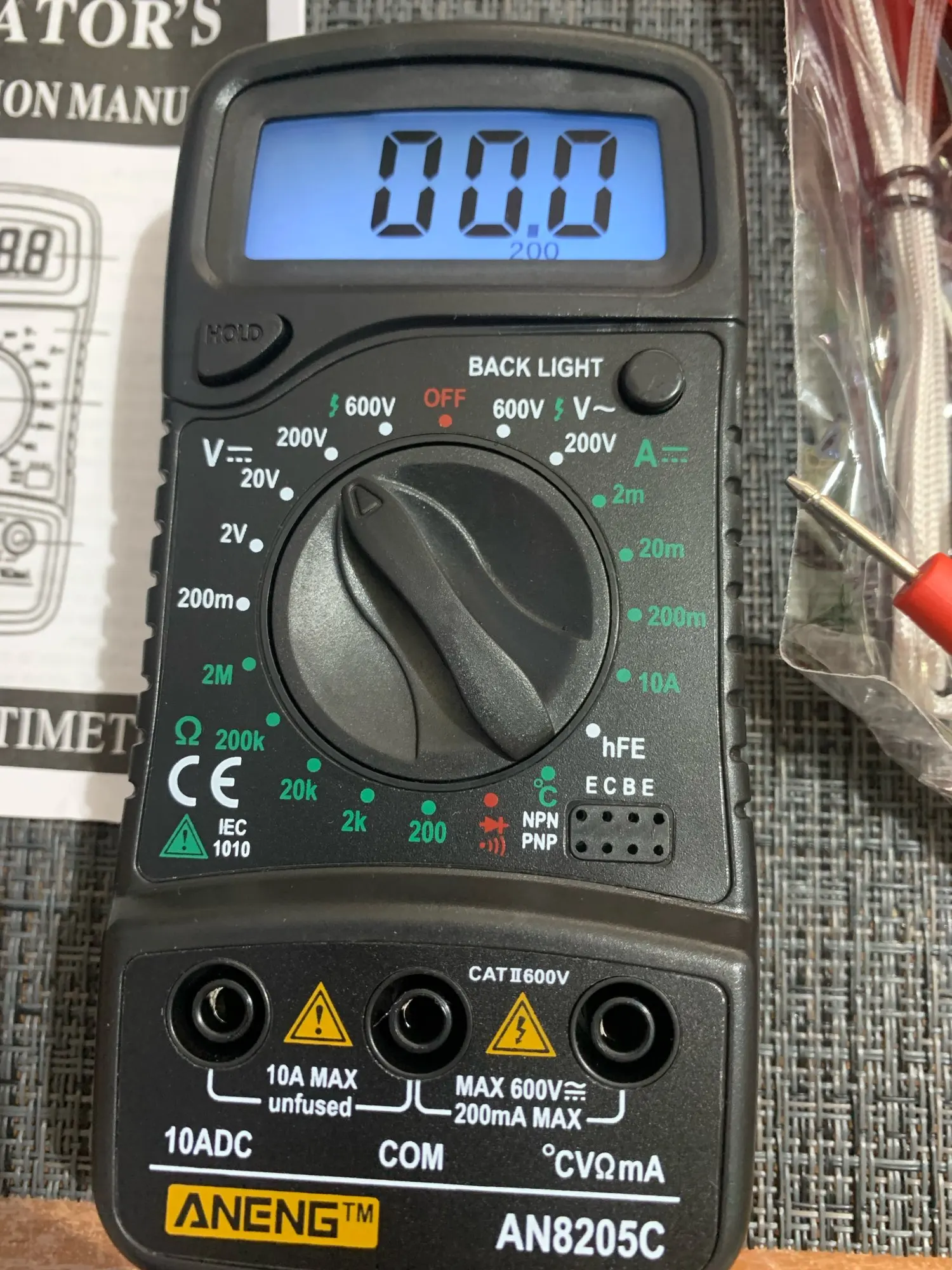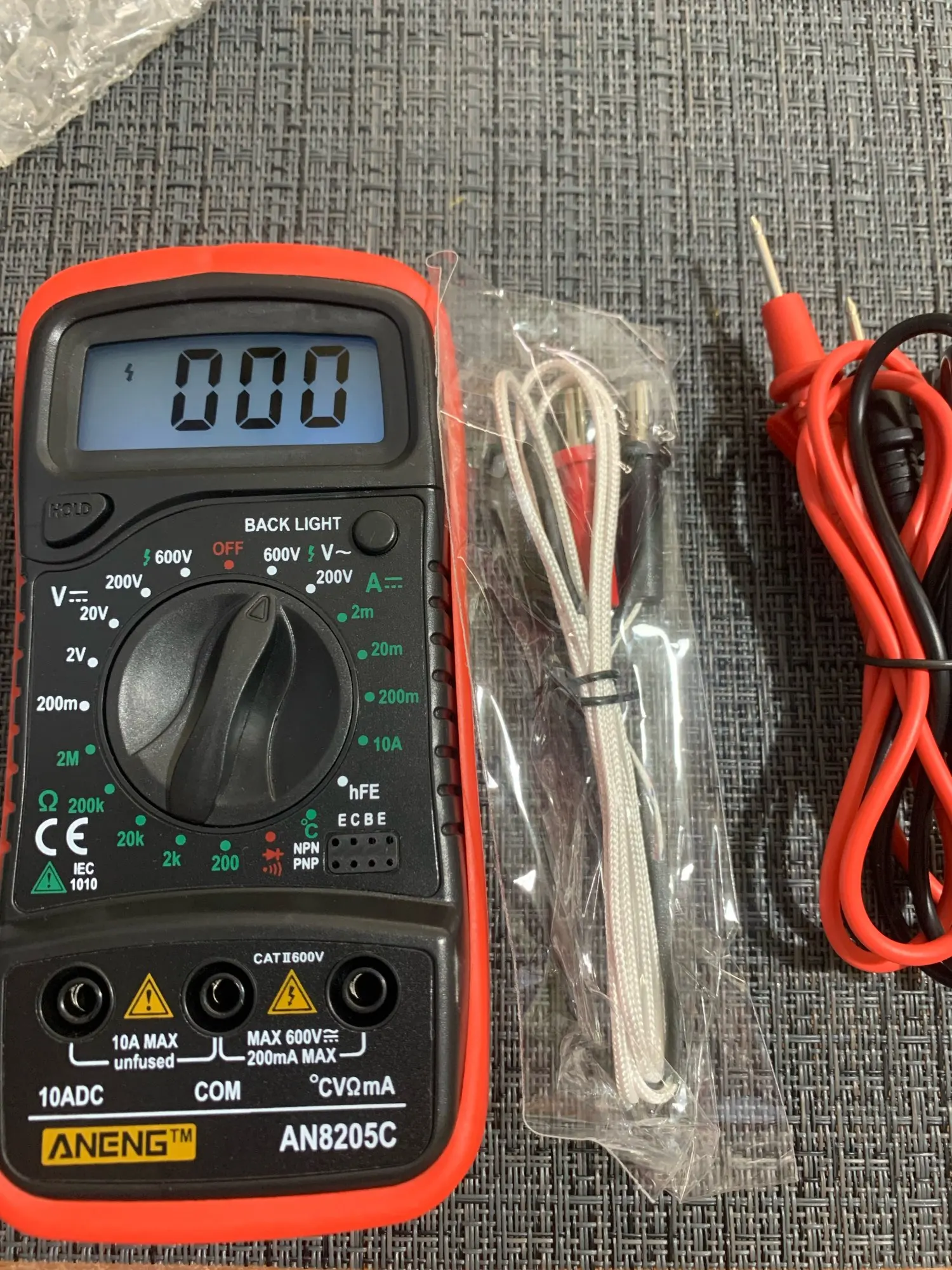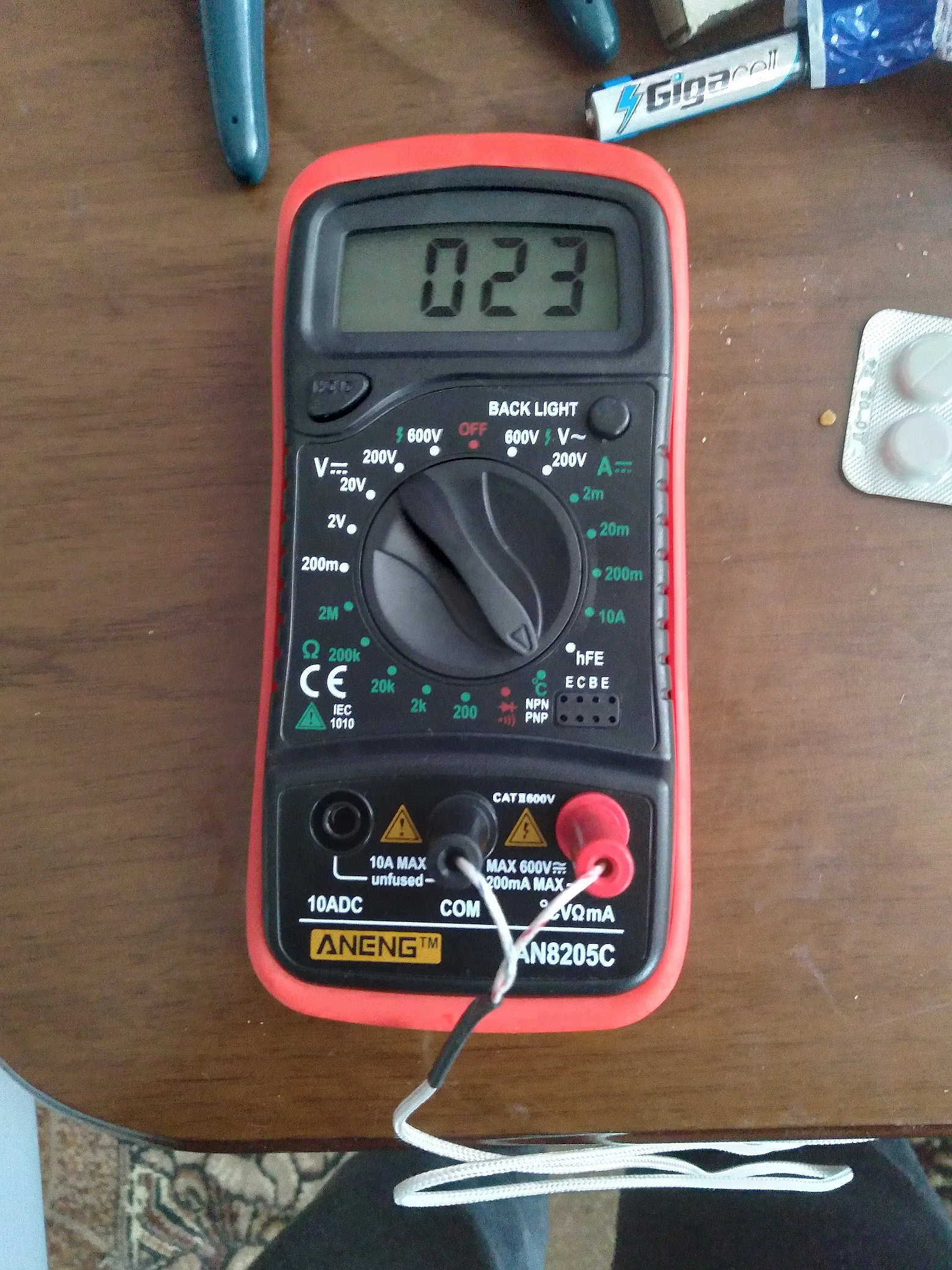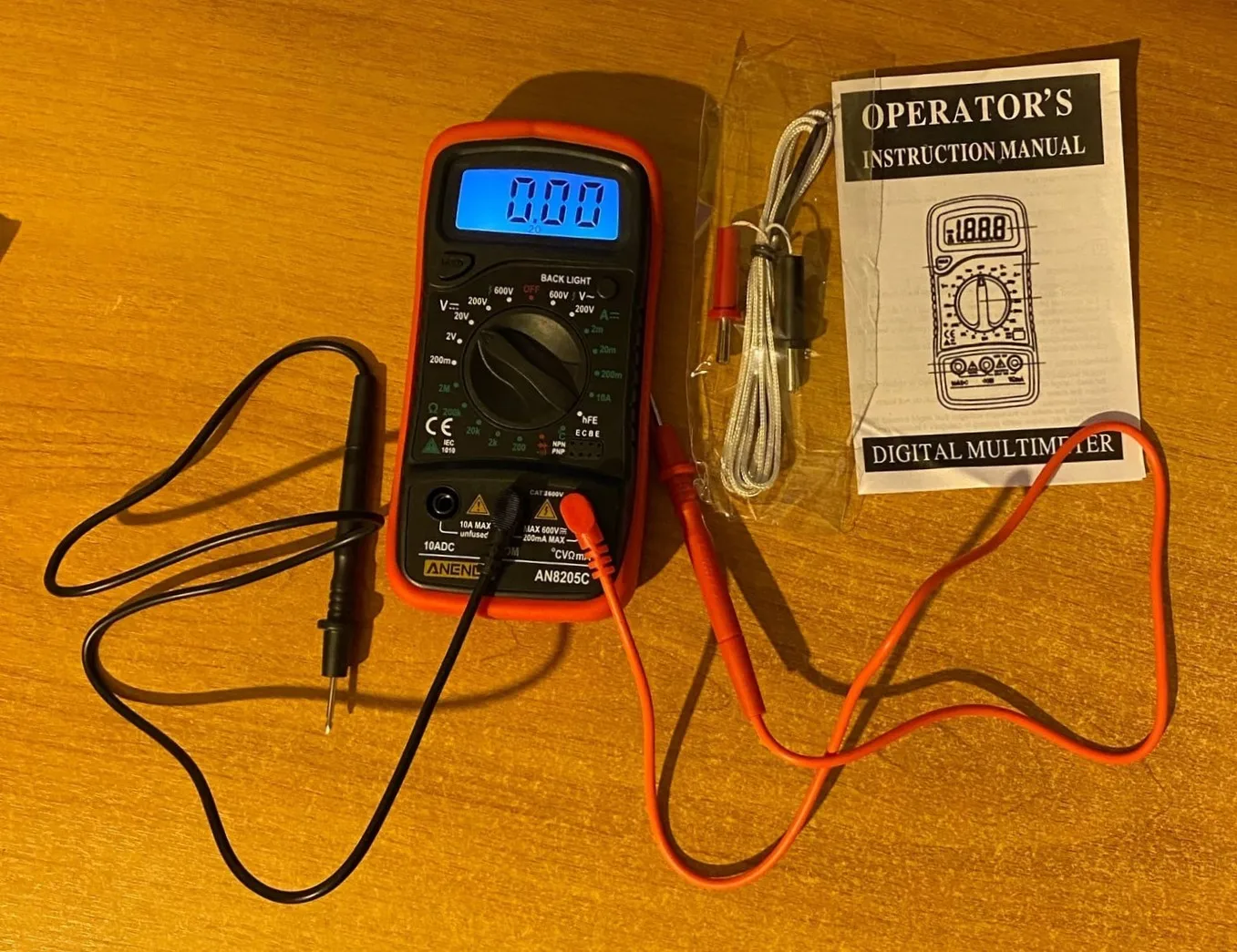 Хороший дешёвый мультиметр. Точность неизвестная, но её однозначно хватает для того чтобы замерять напряжение и прозванивать цепи. Пищалка работает. В комплекте идёт термопара, тоже дешёвая. Скорее побаловаться. Минус: подсветка работает пару секунд и затухает. Неизвестно как оставить её на постоянку.