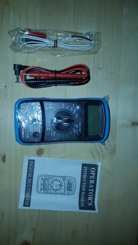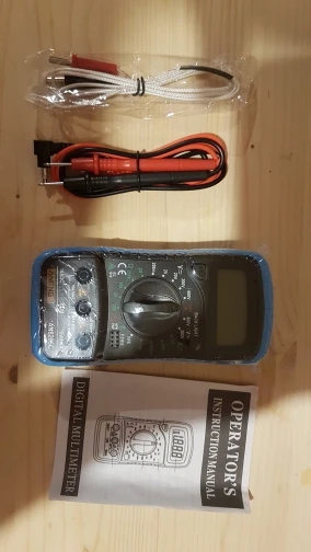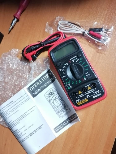 Прибыл в срок. Упакован в пупырку. Комплект -- калоша, сам мультиметр, щупы, термопара. Выполнено очень топорно, шо беда. Питание от кроны (в комплекте нет). Подставка шатается, прям дребезжит. Но стоит уверено. Щупы стандартные дешёвые китайские. Термопара того же качества и вида. Проверить пока не могу, кроны под рукой нет. Позже дополню отзыв. В целом не скажу что стоит своих денег, но это один из самых дешёвых мультиметров с таким функционалом. Советую.
