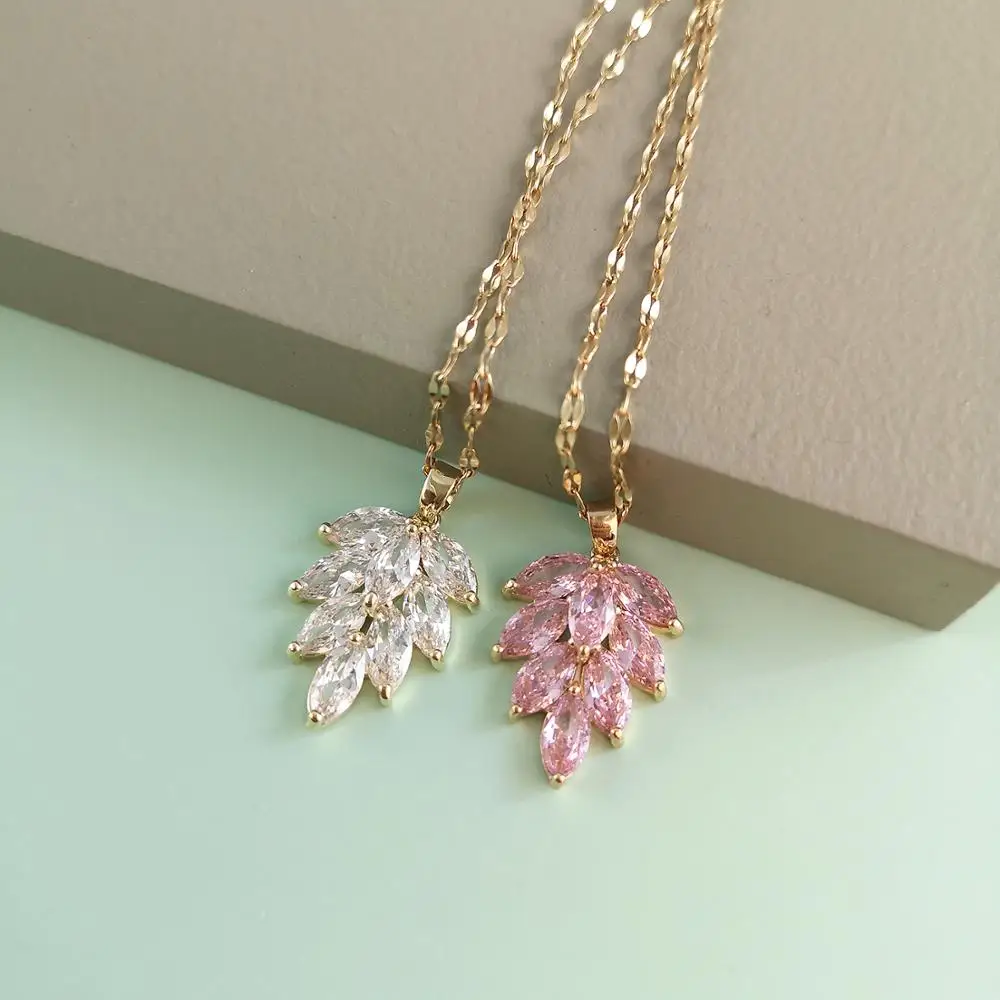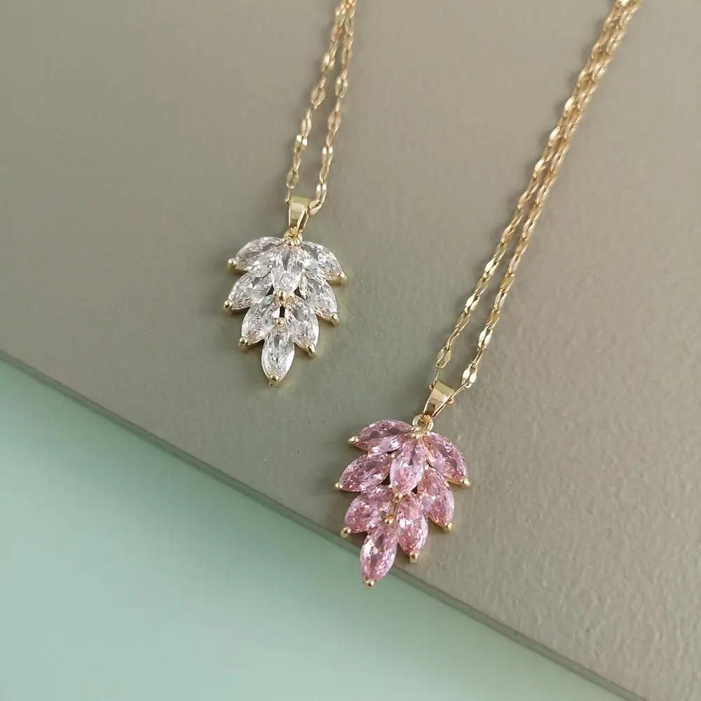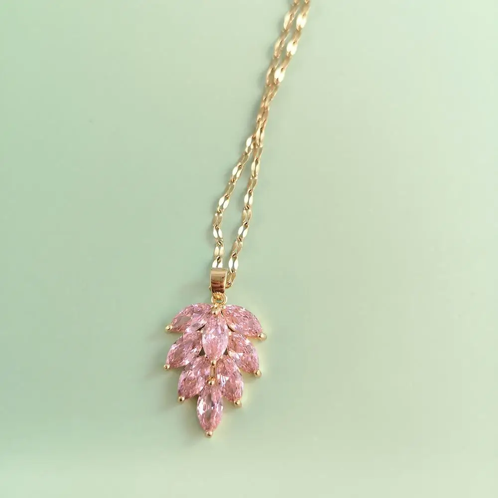Роскошное женское ожерелье из прозрачного розового циркона, модное ожерелье с подвеской в виде больших листьев для женщин, подарок на день рождения невесты