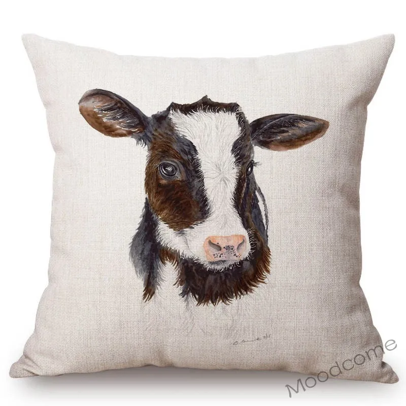 Диванная подушка в винтажном стиле с принтом коровы и цыпленка, дек...