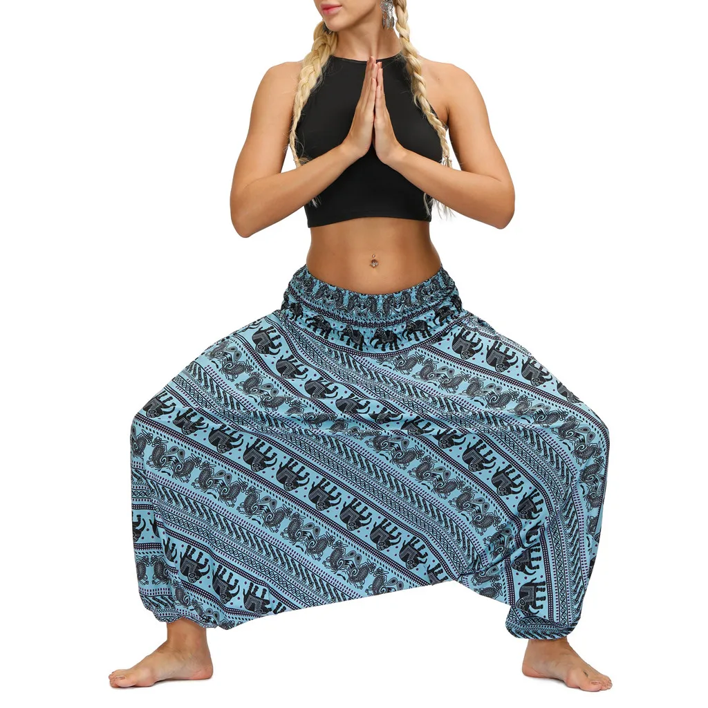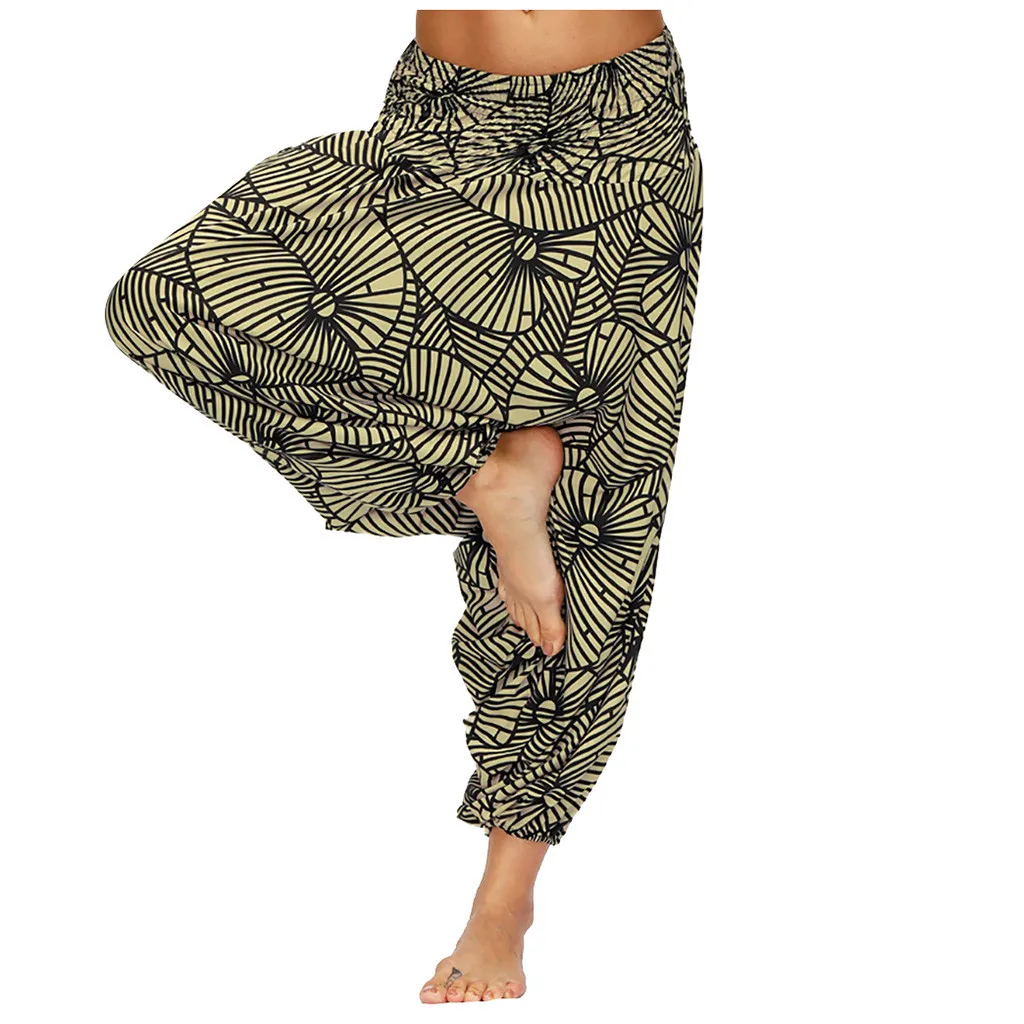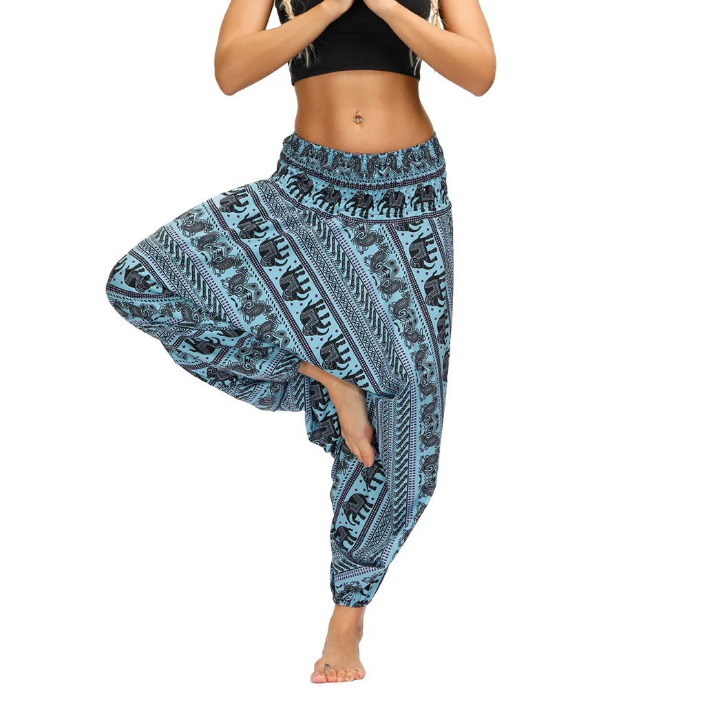 Женские повседневные свободные штаны для занятий йогой с принтом, Длинные шаровары с эластичным поясом, модные брюки с широкими штанинами, штаны для йоги с высокой талией, 30