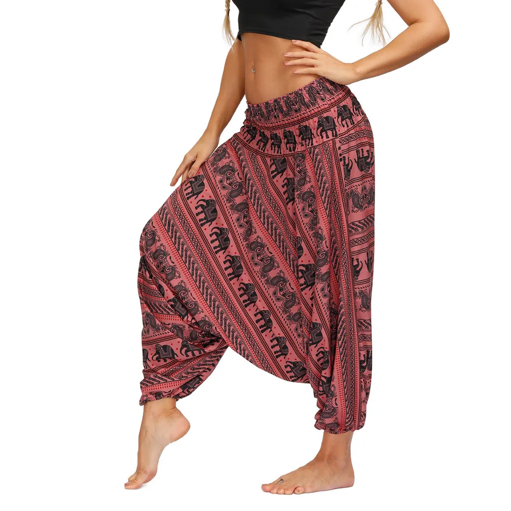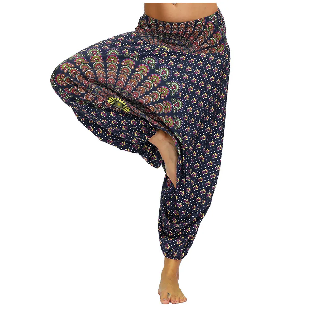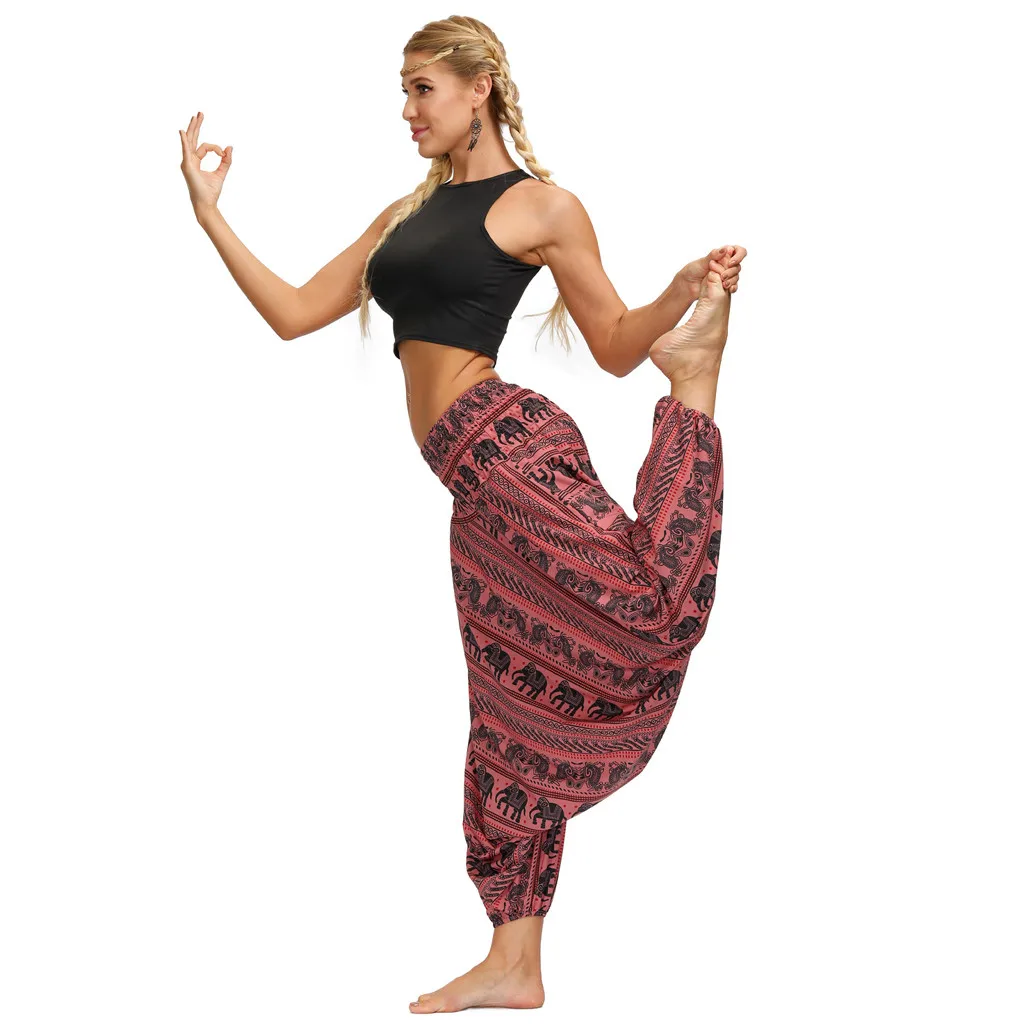 Женские повседневные свободные штаны для занятий йогой с принтом, Длинные шаровары с эластичным поясом, модные брюки с широкими штанинами, штаны для йоги с высокой талией, 30