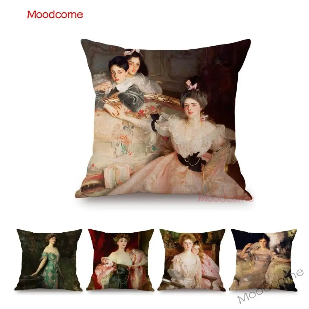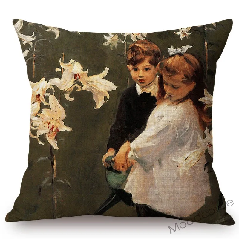 Льняной чехол для диванной подушки, с изображением художника импрес...