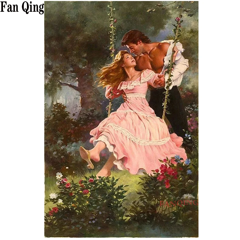 5D Diamond Embroidery Rose Lady Couple Swing Rhinestone Pictures Diamond Mosaic Set Full Square Cross stitch Kit Painting