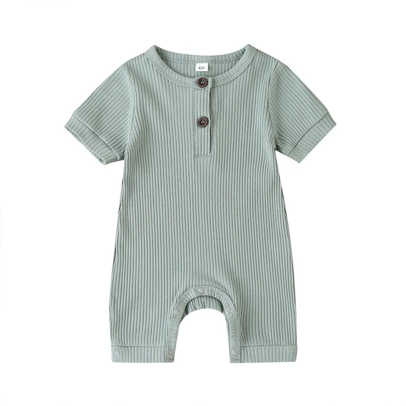 Комбинезон детский, хлопковый, трикотажный, с коротким рукавом, в рубчик, для новорожденных, лето 2020