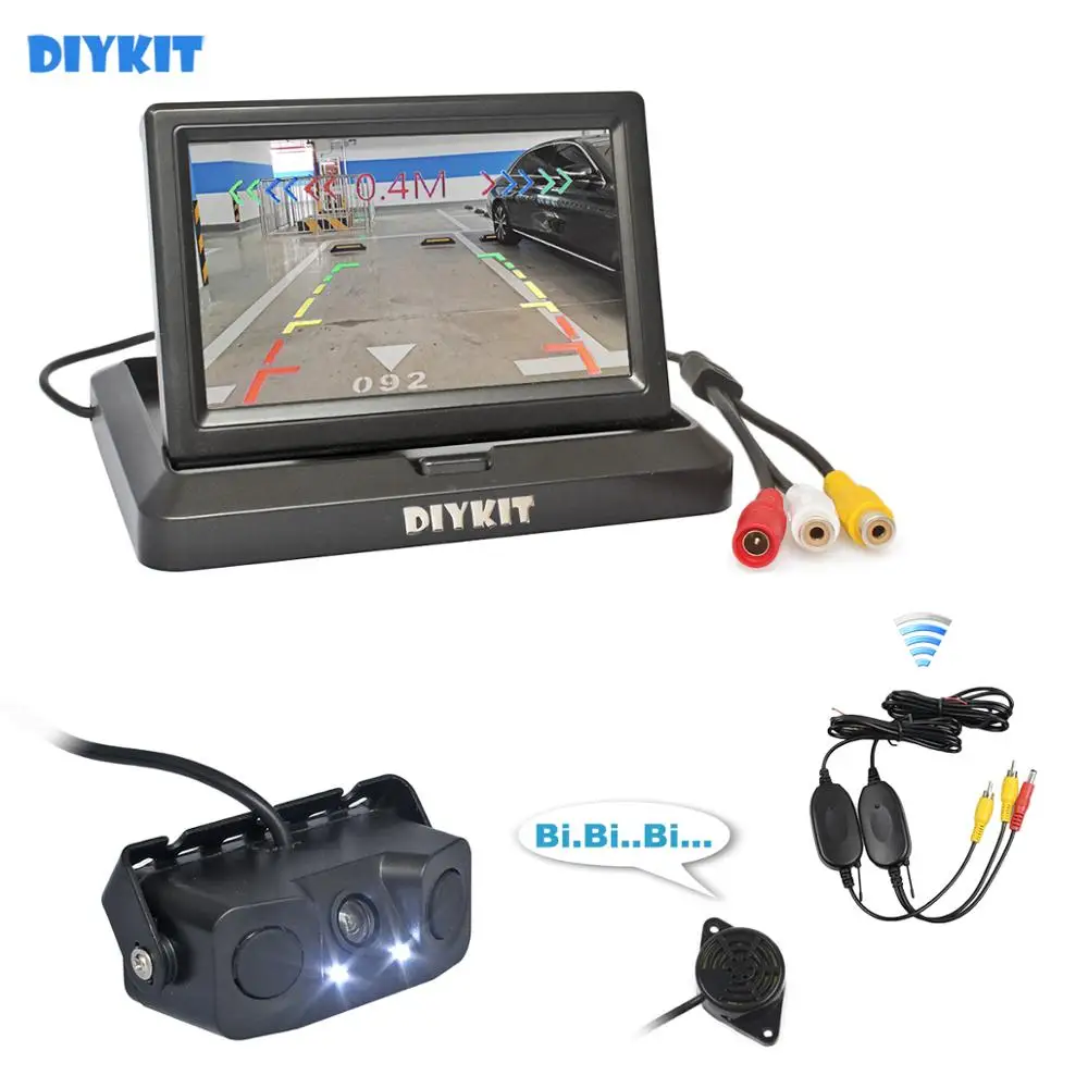 Автомобильная камера заднего вида DIYKIT, беспроводная камера с 5 "монитором, парковочным радаром и датчиком, 2 в 1, система для парковки