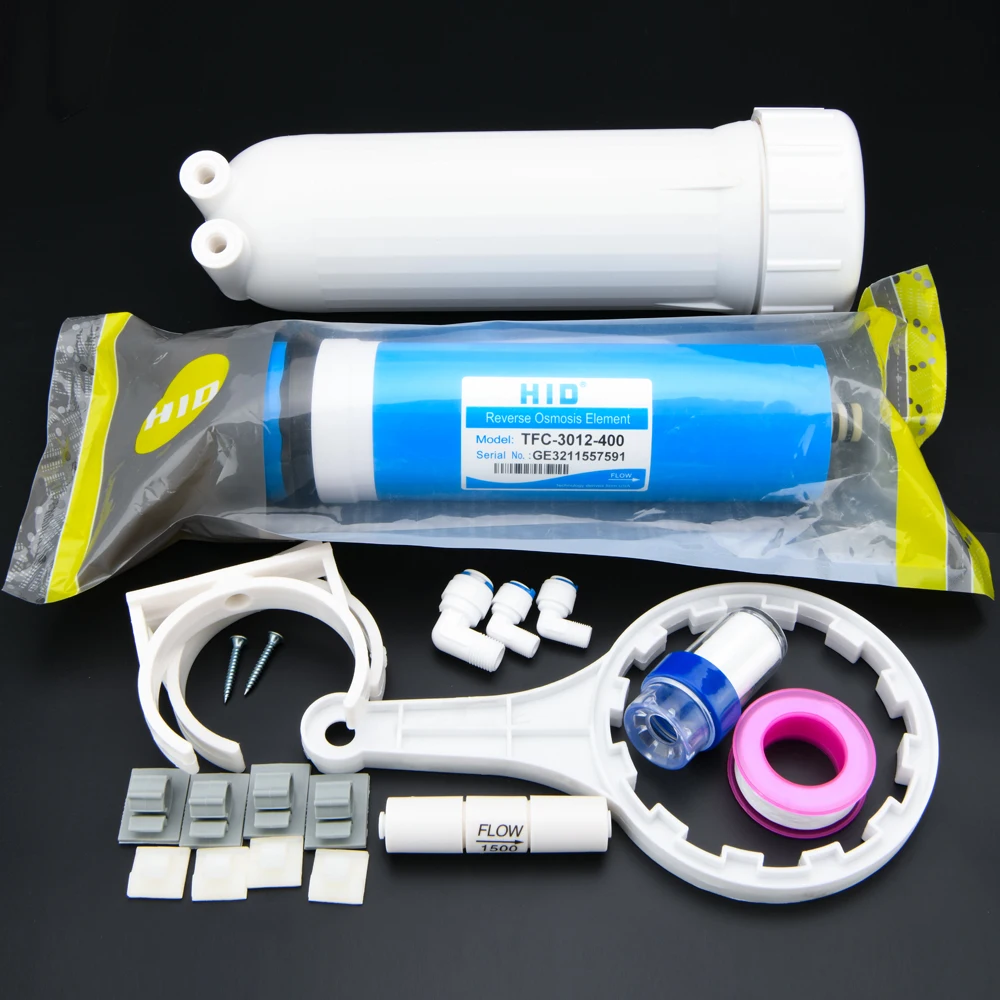 Этот набор включает Мембрана обратного осмоса (Vontron) 400 г * 1 шт. Мембранный корпус RO * 1 шт. Локоть 1/4 дюйма * 2 шт. Локоть 3/8 ''* 1 шт. Гаечный ключ * 1 шт. Кронштейн * 2 шт. Ограничительный поток (1500CC)* 1 шт