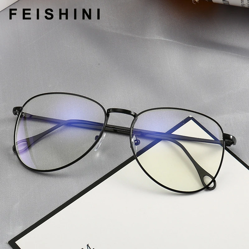 Оправа для компьютерных очков Feishini, мужские очки-авиаторы, металлические очки унисекс с защитой от синего света, женские и мужские оптические очки