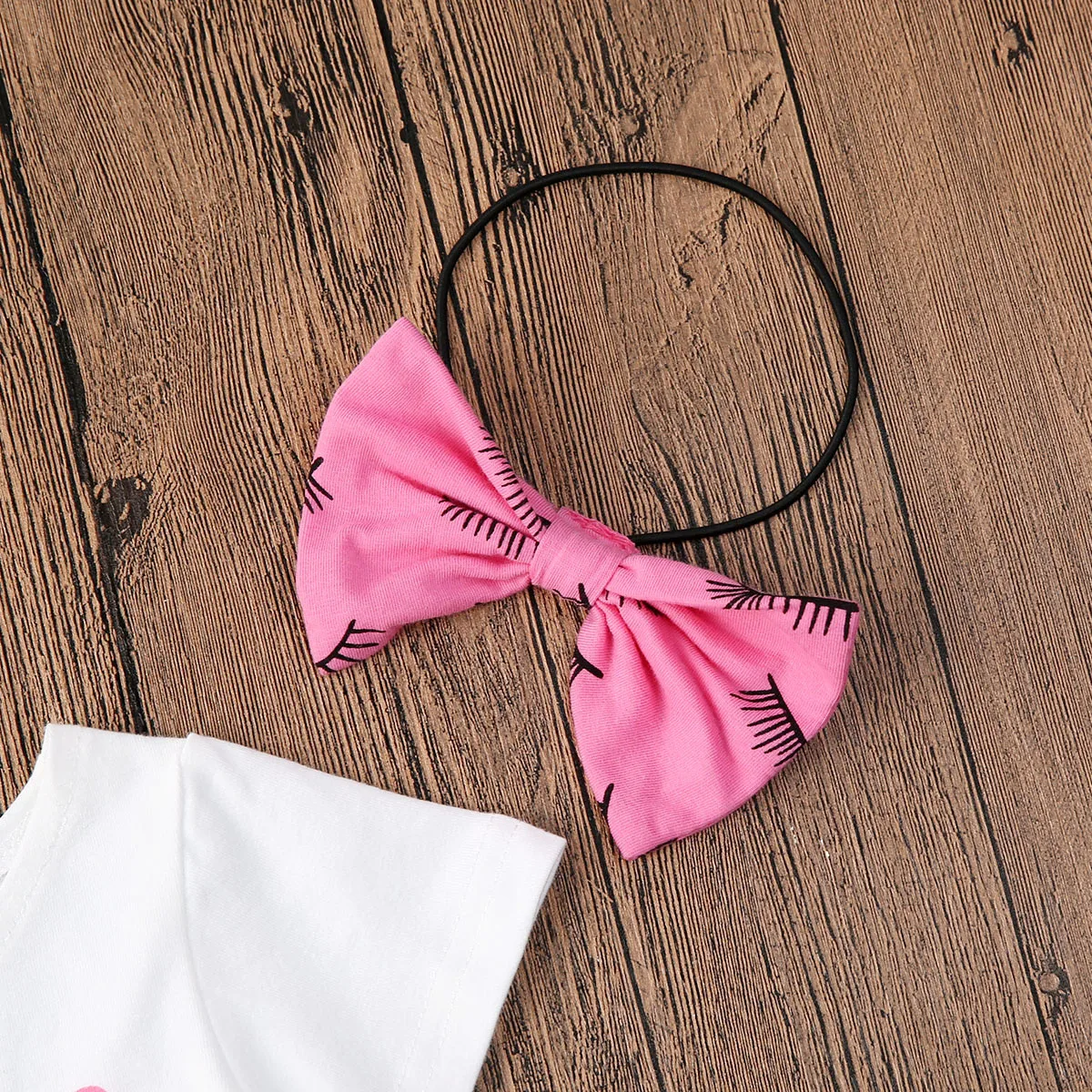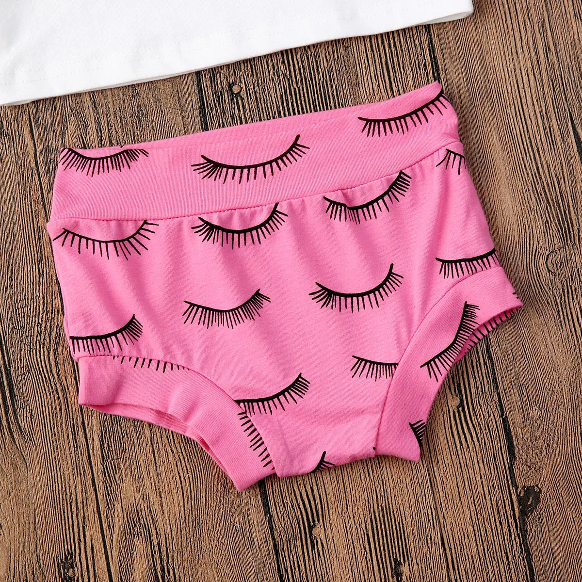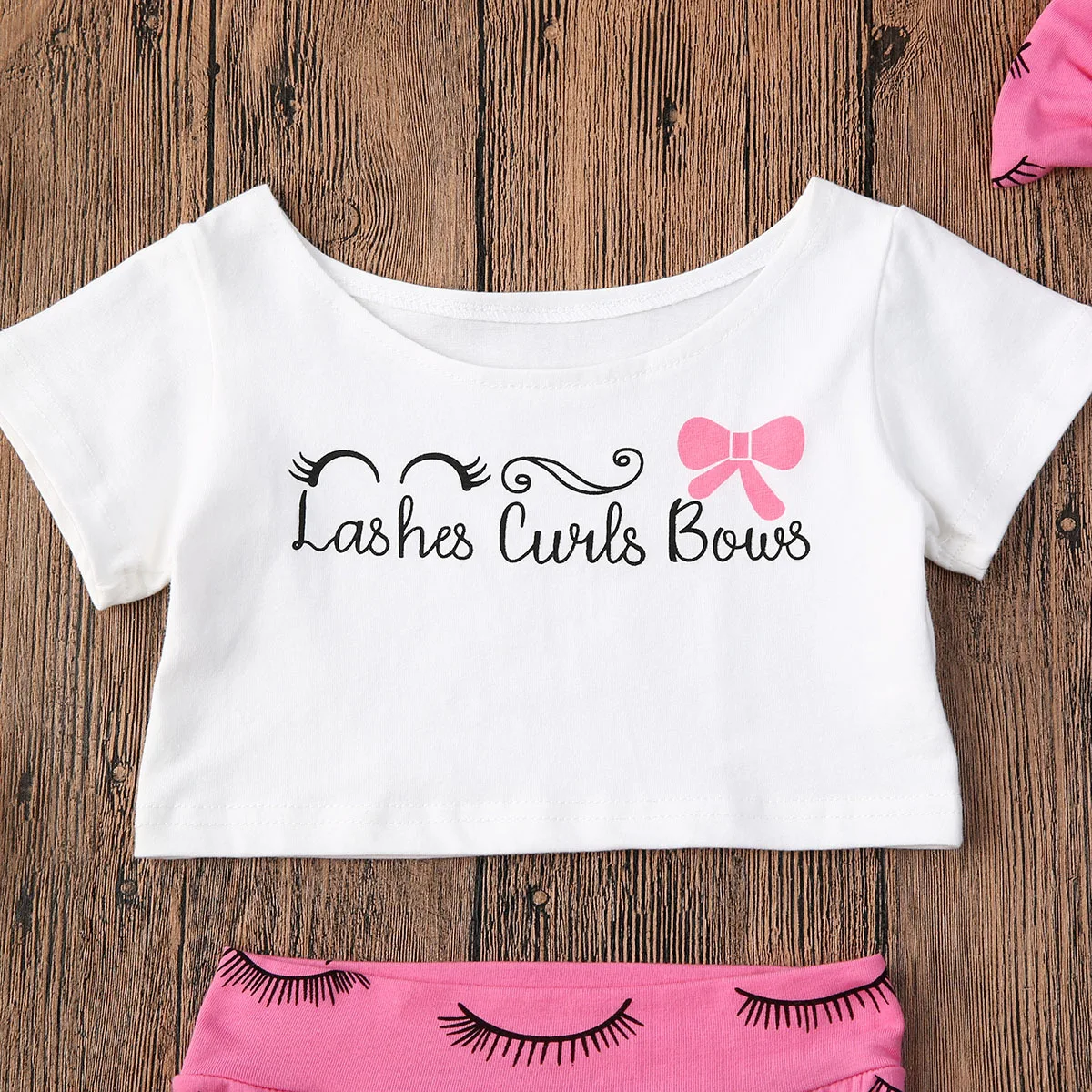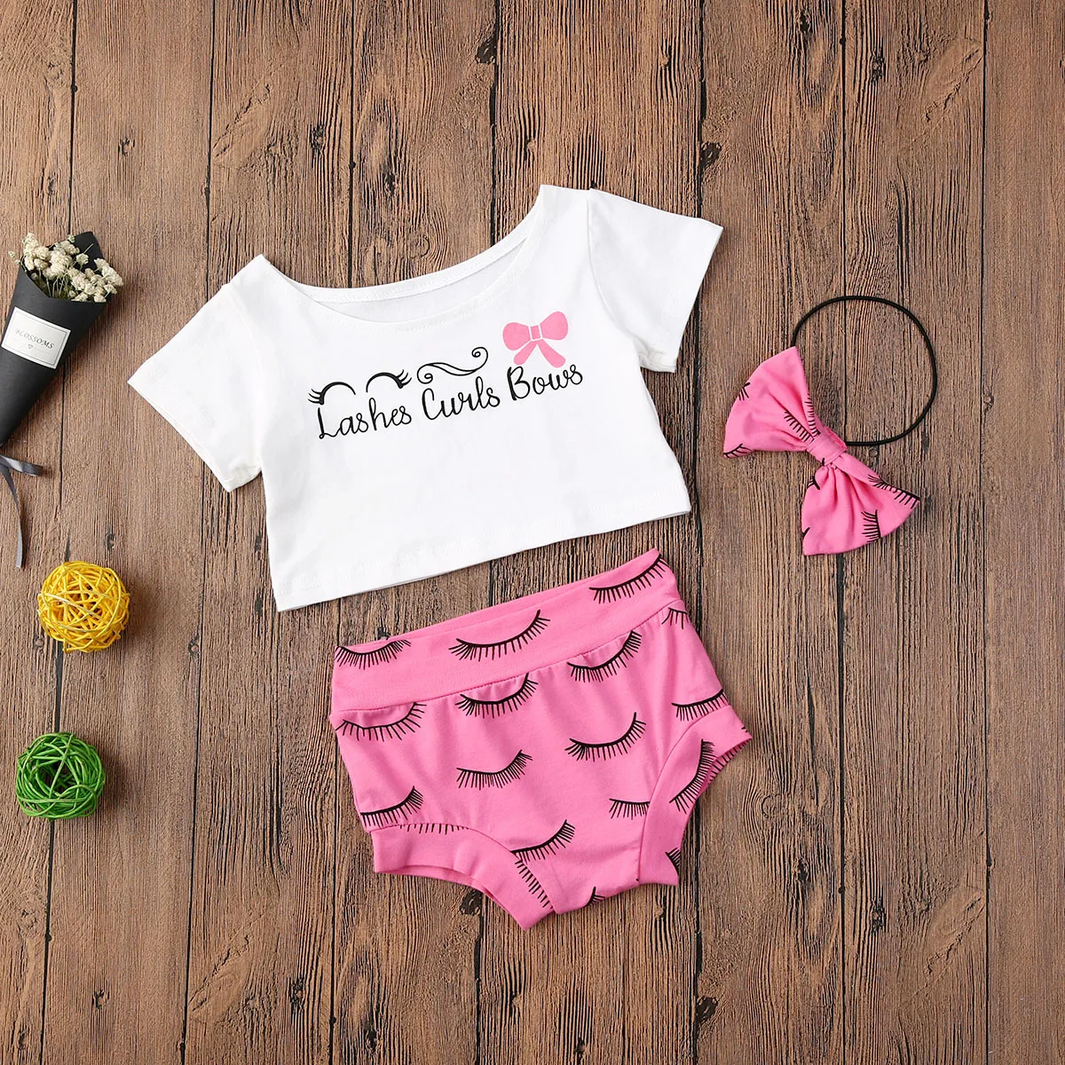 Комплекты одежды для новорожденных девочек белые футболки с коротким рукавом и принтом топы + розовые шорты штаны и повязка на голову