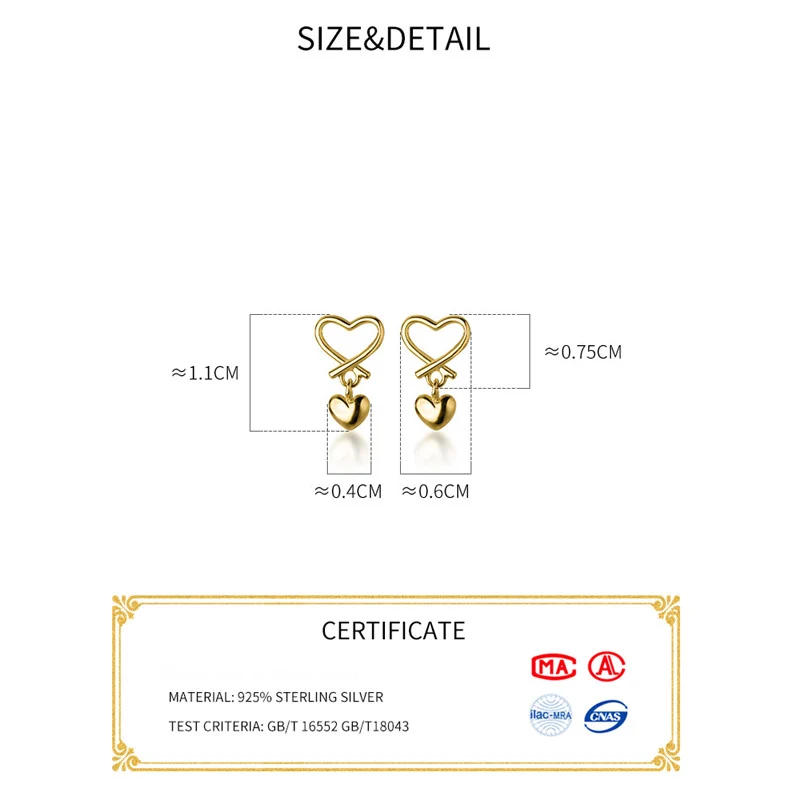 Название: Модные полые серьги-гвоздики в форме сердца 925 пробы серебряные ювелирные изделия серебряные серьги Цвет: серебристый, золотой Затычки для ушей: с 4 пластиковыми затычками для ушей Посылка: Пластик коробка (3,5 см * 3,5 см * 1,8 см) в один пакет из пузырчатой пленки (13 см * 15 см)