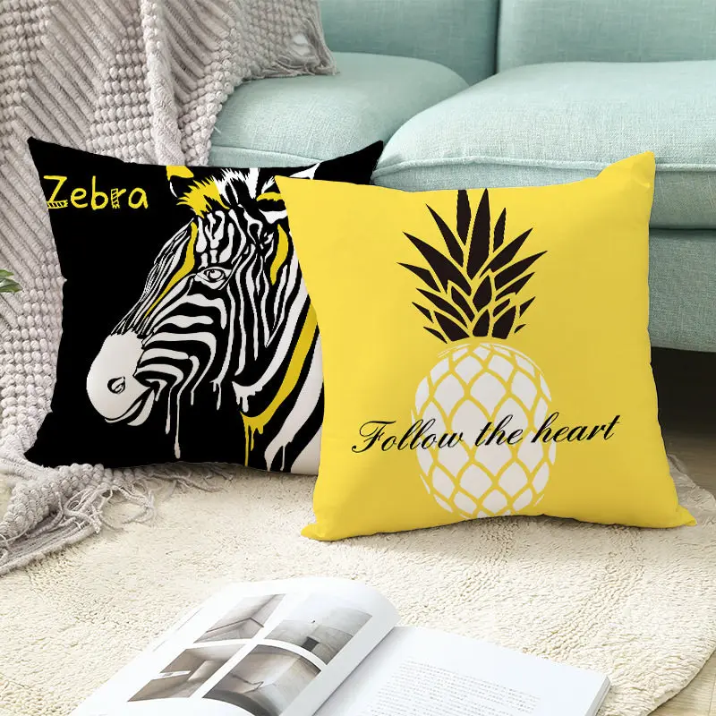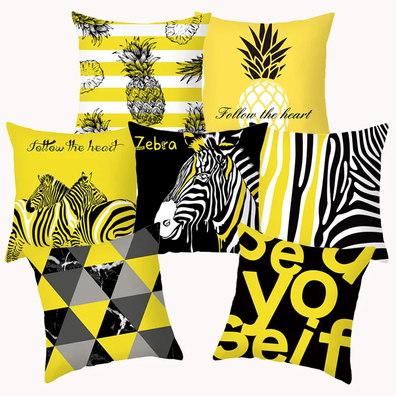 Желтая Геометрическая наволочка в виде зебры, декоративная наволочка, наволочка с рисунком ананаса, диван, украшение для дома