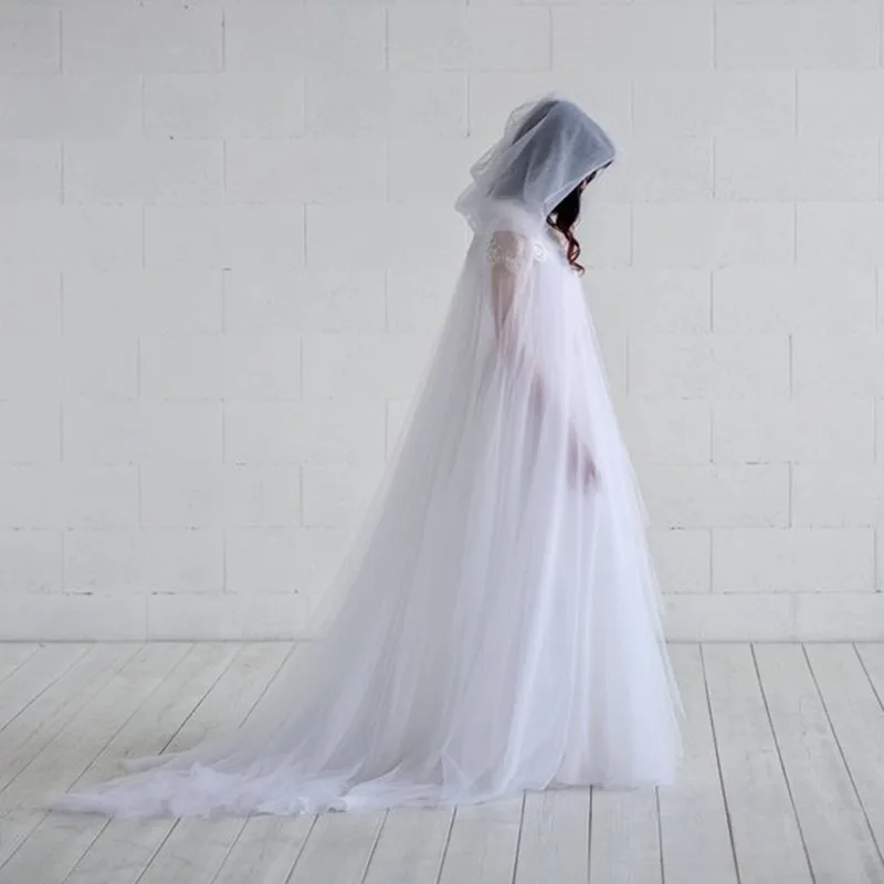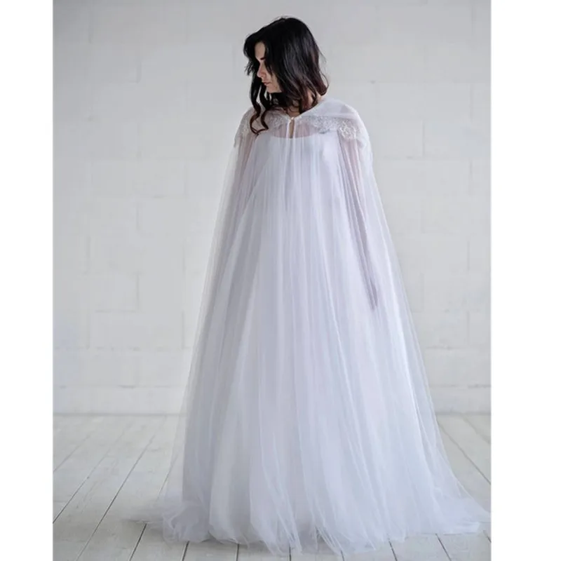 Женское вечернее болеро из белого тюля, накидка для невесты, пальто, свадебные аксессуары, Длинная накидка, шали для невесты J09