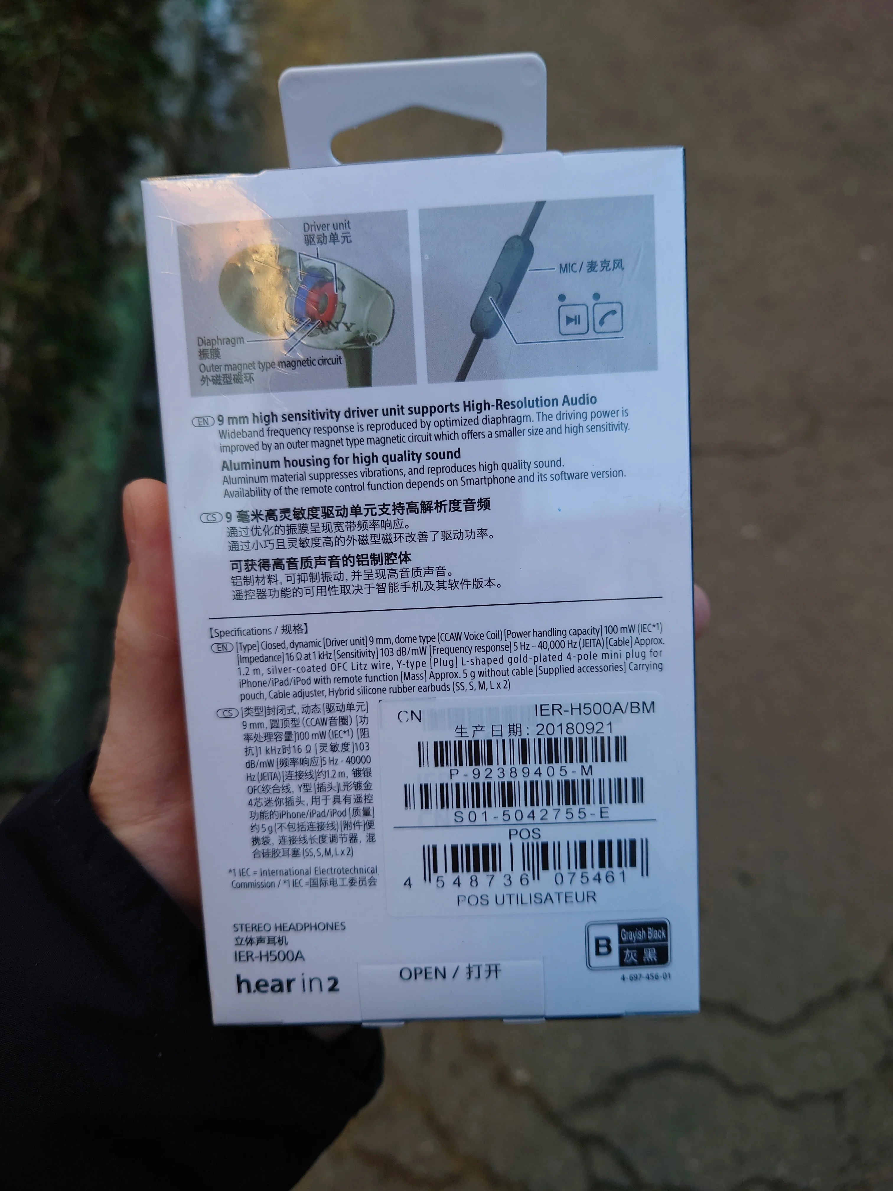Стереонаушники SONY IER-H500A, проводные наушники 3,5 мм, Спортивная гарнитура, Hi-Fi наушники, гарнитура с микрофоном для смартфонов, музыкальных игр