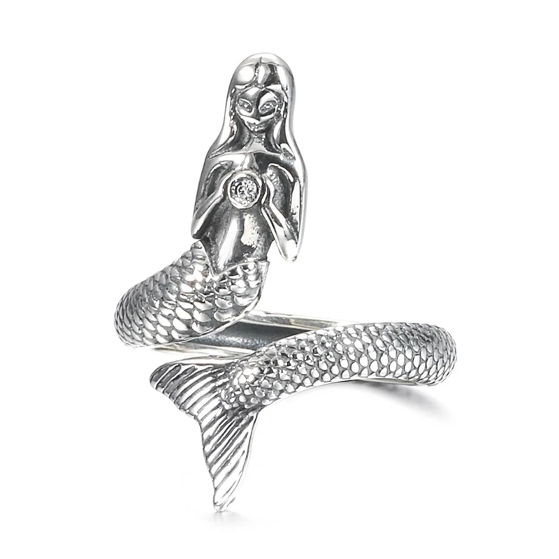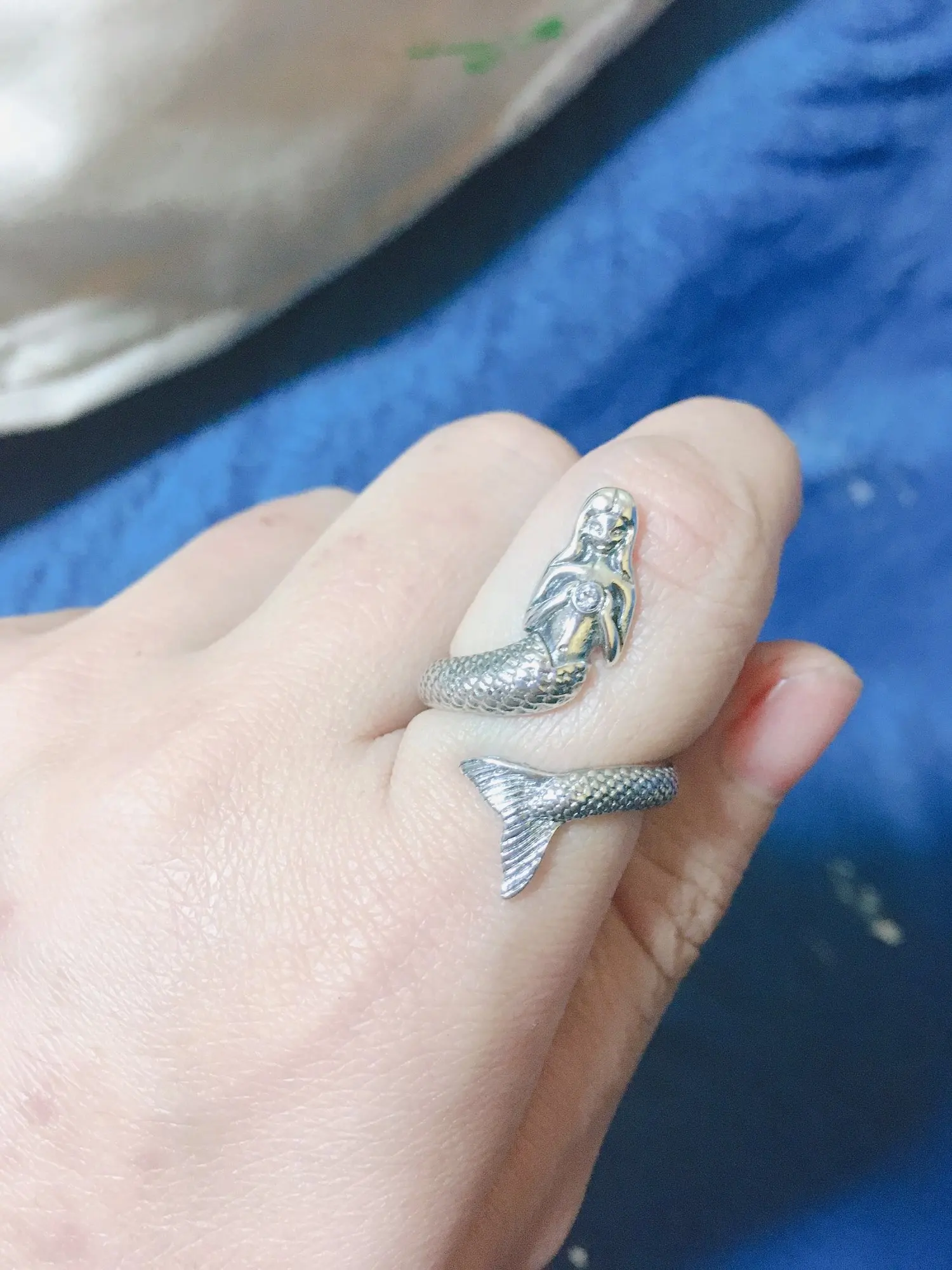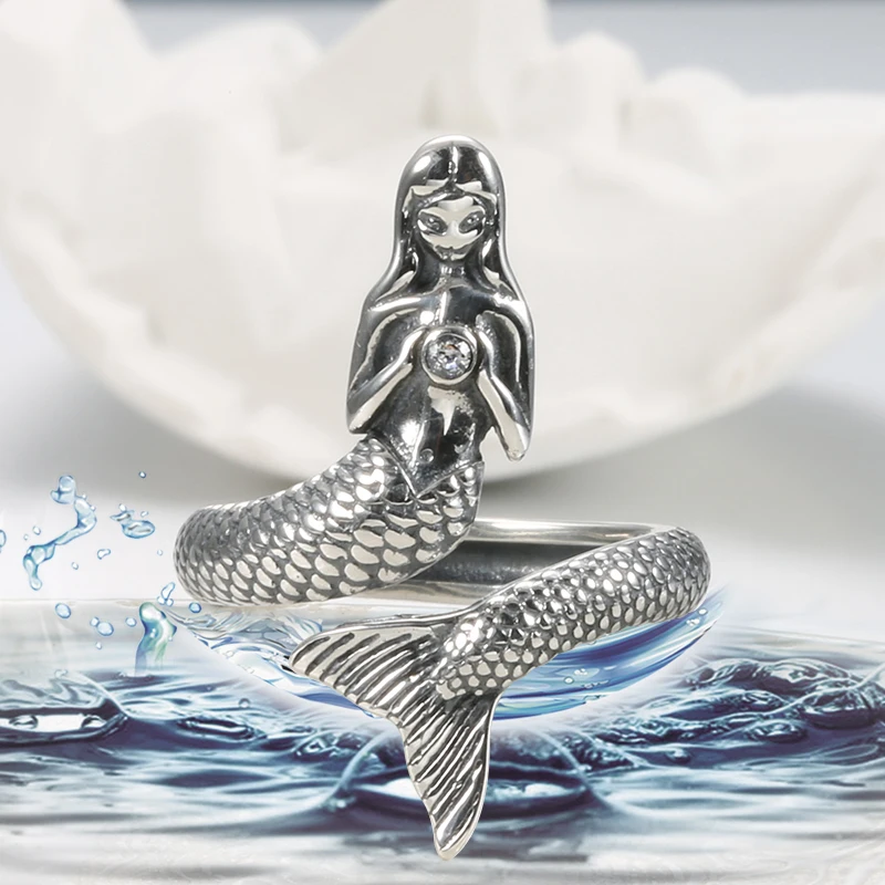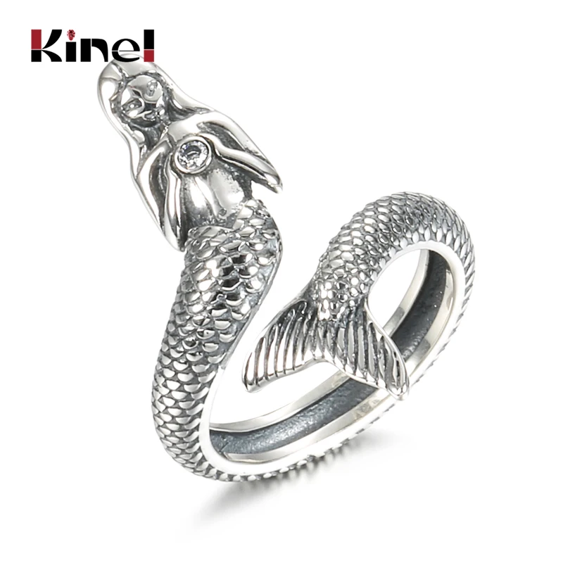 Модные женские кольца на палец Kinel горячая Распродажа из серебра 100% пробы с изображением семейства животных русалок, Подарочные ювелирные изделия из серебра 925 пробы