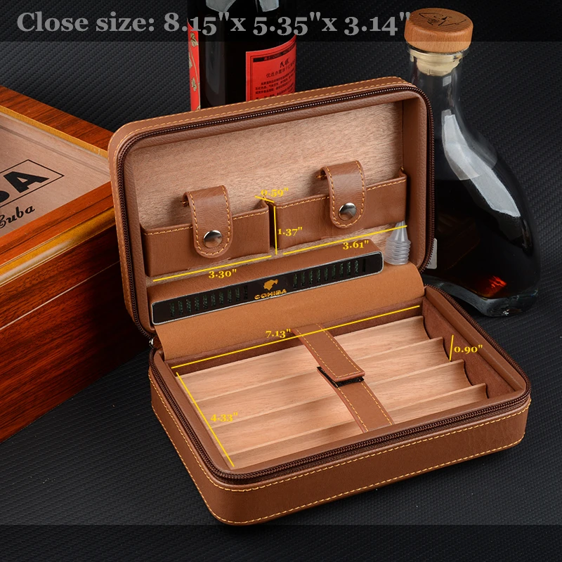 Кожаный чехол для сигар Cohiba, дорожный увлажнитель воздуха из портативный хьюмидор кедра (без зажигалки)