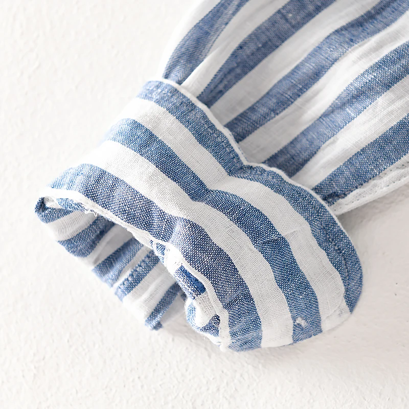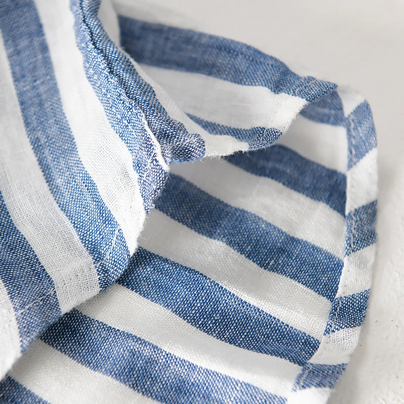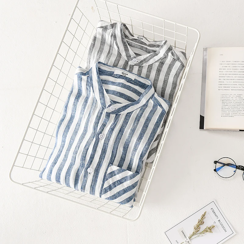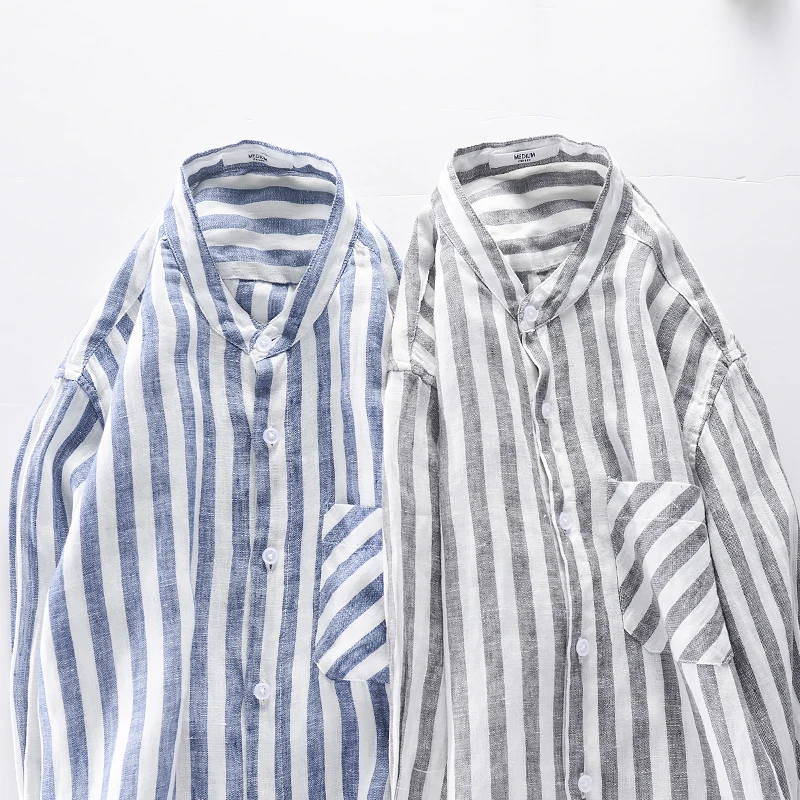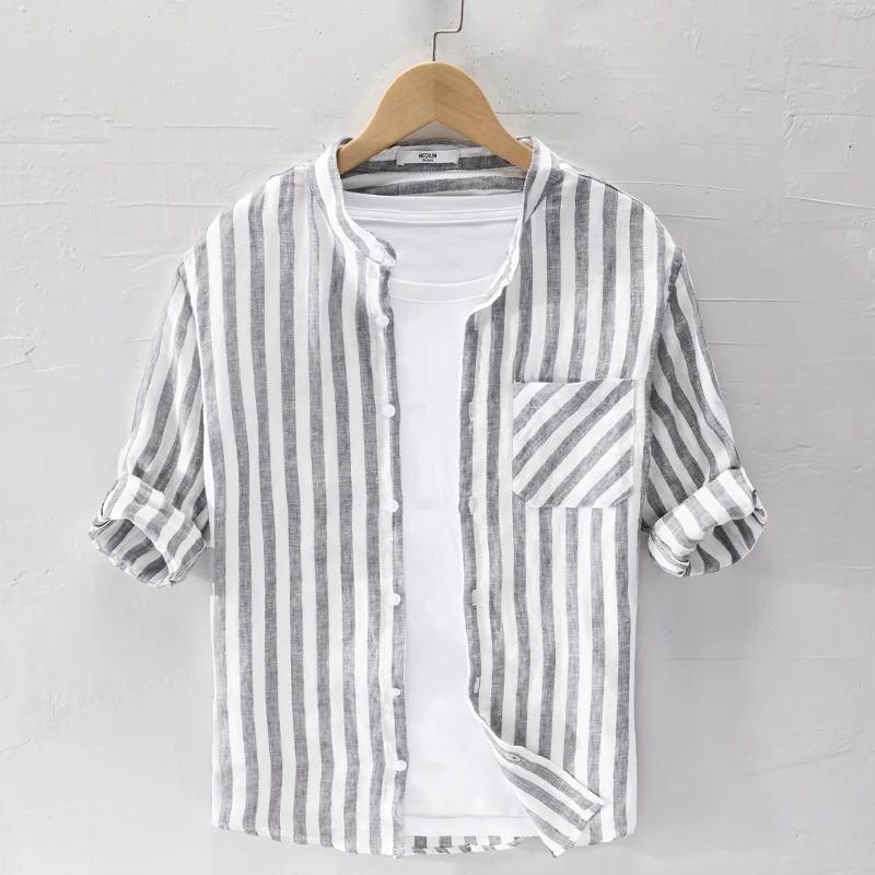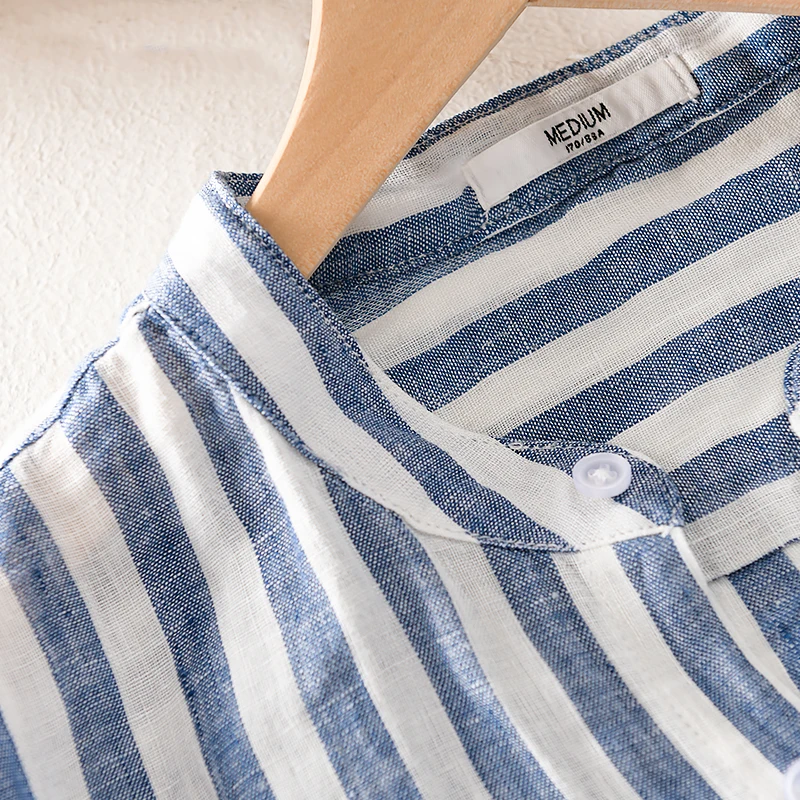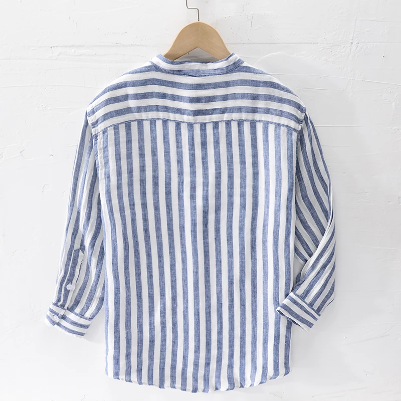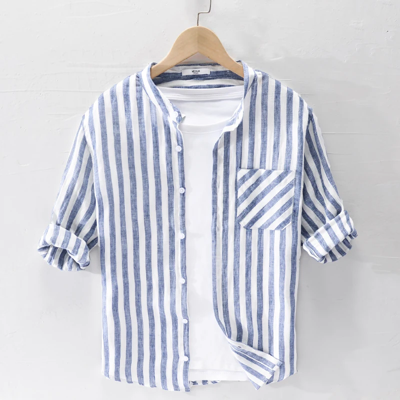 Мужская летняя рубашка в полоску, с воротником-стойкой