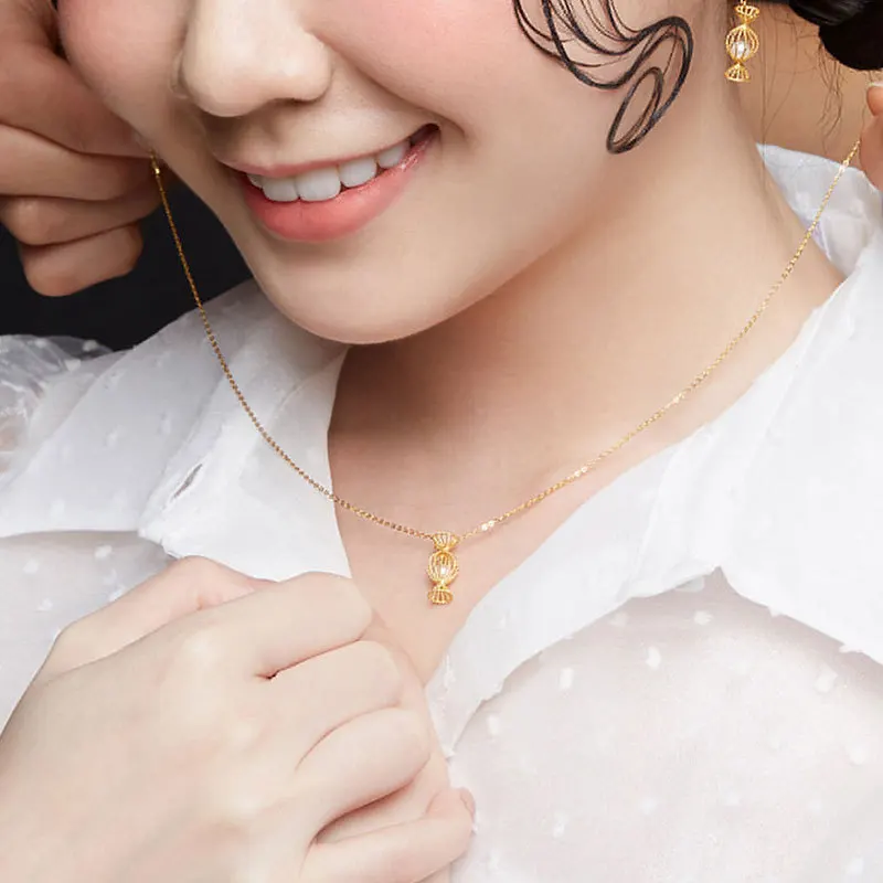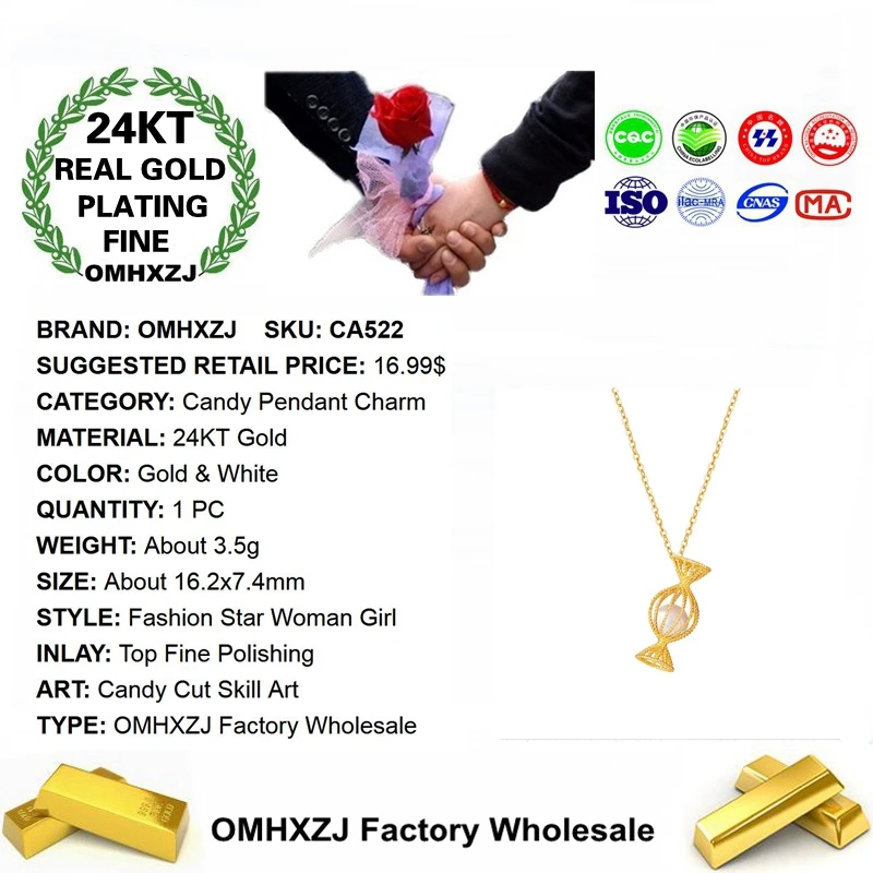 OMHXZJ ювелирные изделия оптом CA522 Европейская мода Изящные женские вечерние свадебные подарки на день рождения милые конфеты 24KT Золотая подвеска