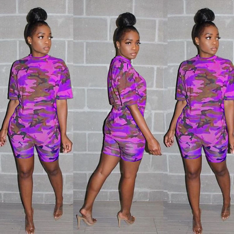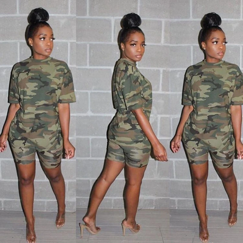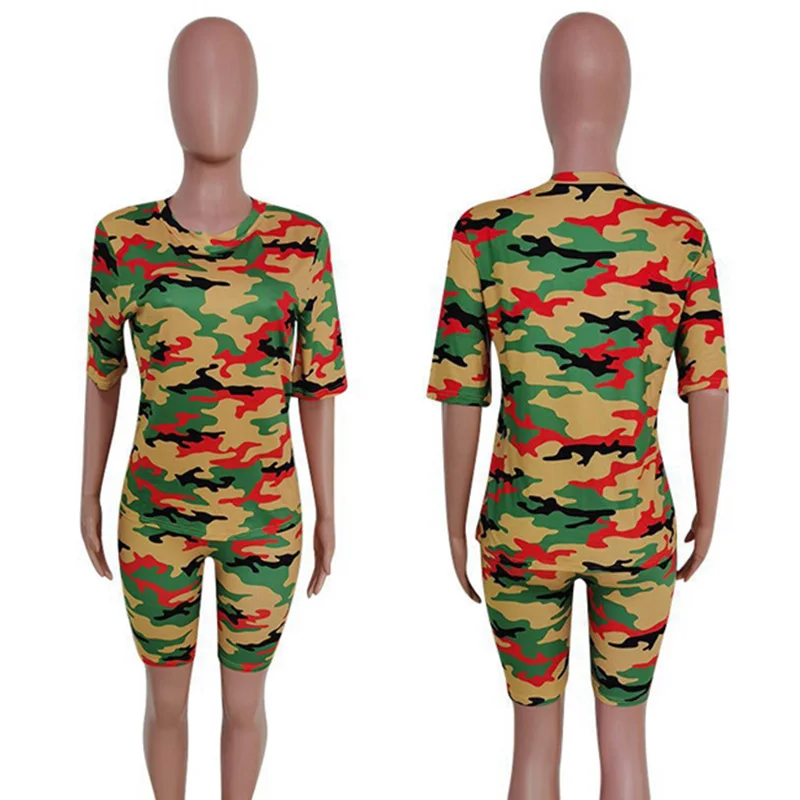 Для женщин Верхняя одежда из двух частей 2021 шорты костюм с камуфляжным принтом Топ байкерские шорты с сумочкой в комплекте, комплекты для Для женщин; Для летнего отдыха; Куртка; Комплект из 2 предметов, спортивный костюм