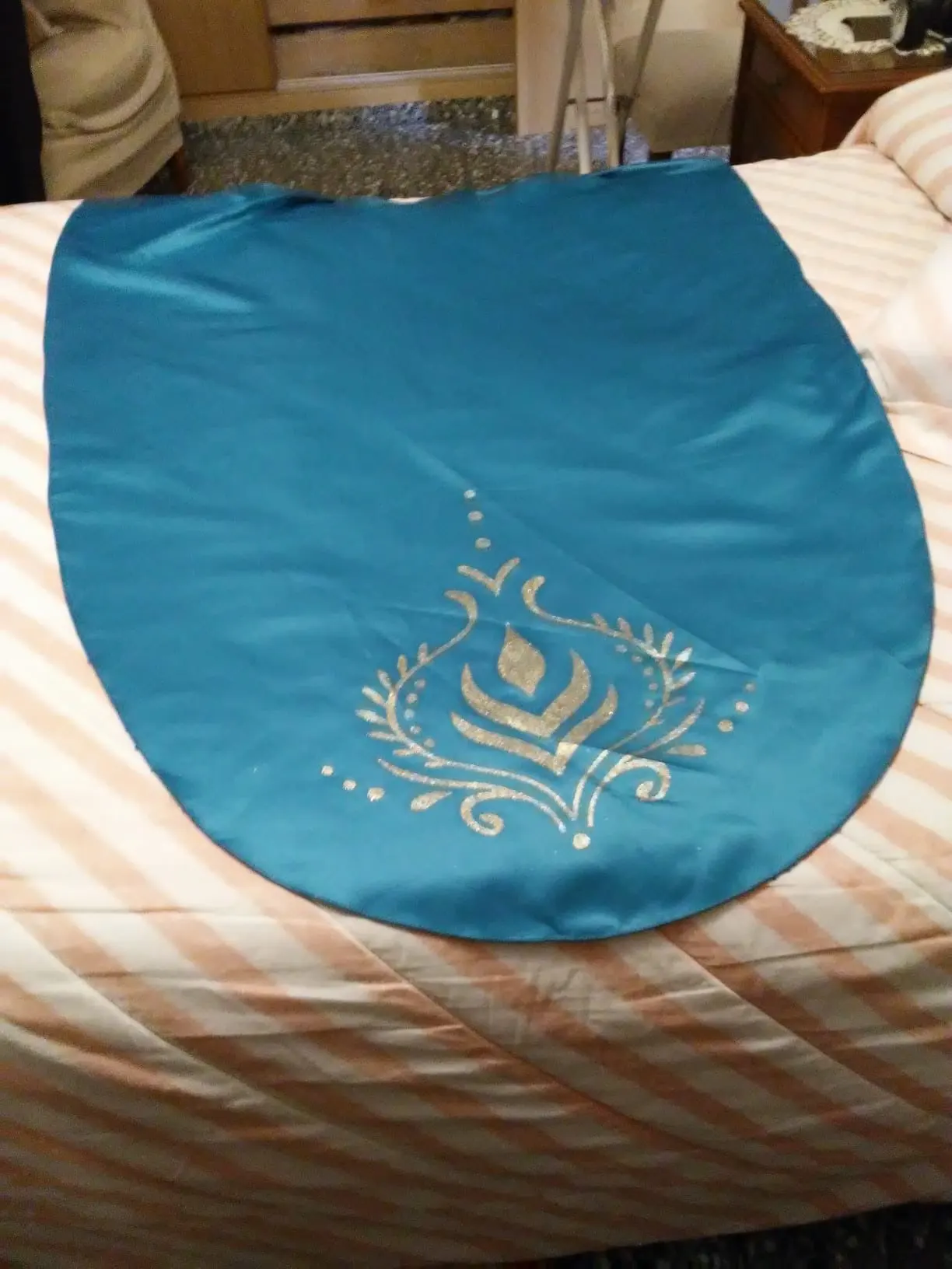 Как в описании. Ткань очень красивая и хорошо сшита. Я не могу сказать размер, потому что мы сохранили его на Рождество.