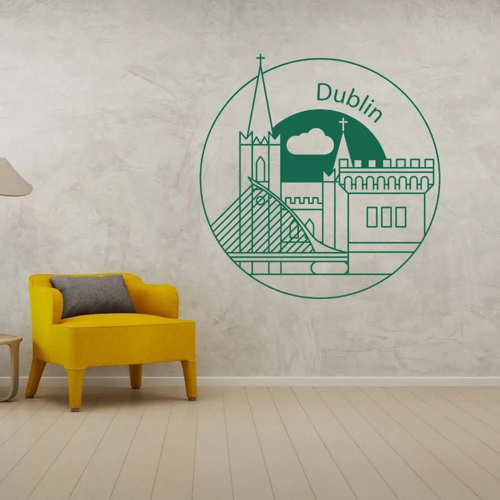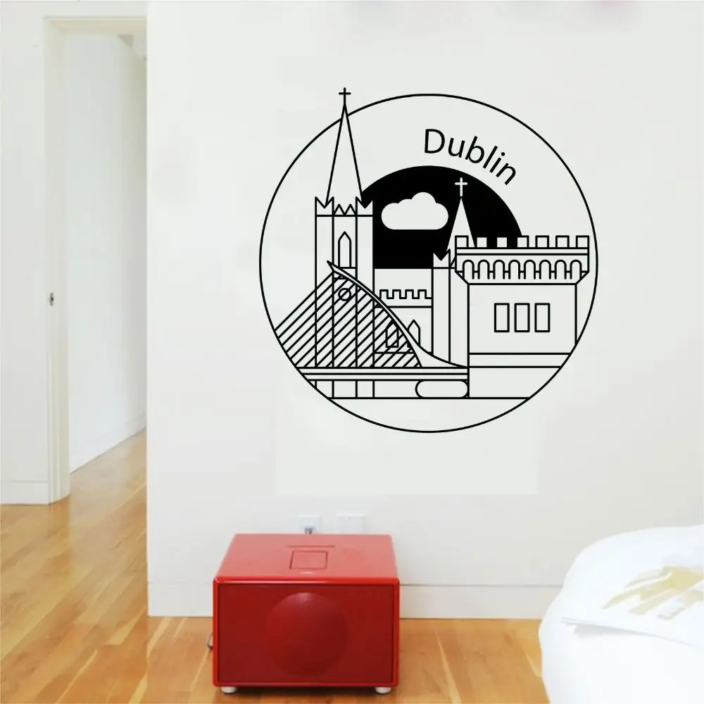 Круглая Настенная картина, Дублин, Ирландия, минималистичный городской пейзаж, Настенная картинка, география, украшение для дома, съемный A002216