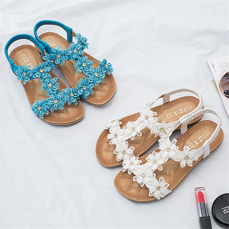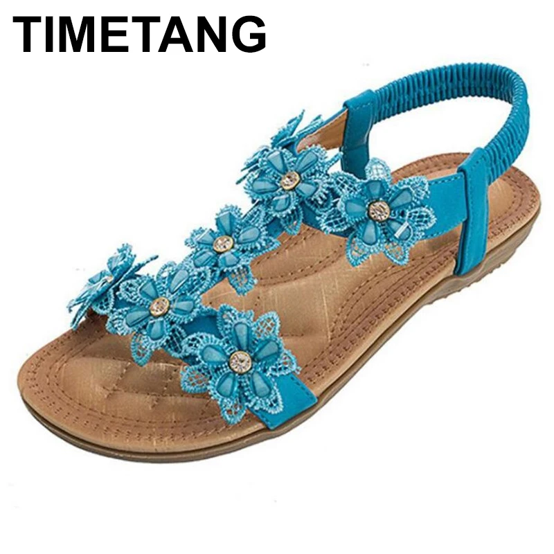 Повседневные Модные размера плюс женские сандалии с Т-образным цветком, удобные мягкие пляжные сандалии для отдыха, плоская подошва, лето 2020